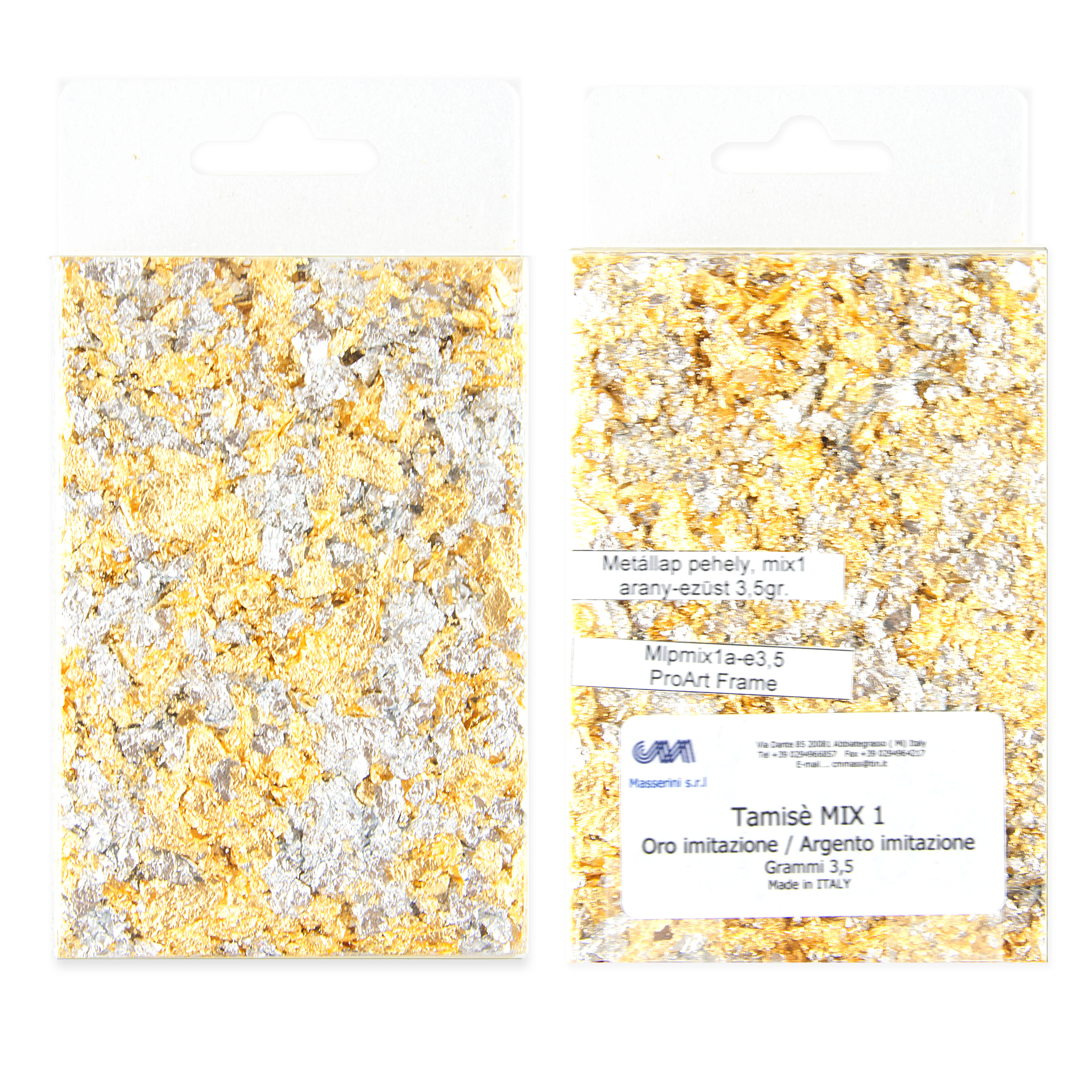 Metállap - pehely mix1 arany-ezüst 3,5 gr. - Mlpmix1a-e3,5 Kérdése van? Aranyozás során a ragasztós felületre egy ecset segítésével vihetjük fel.