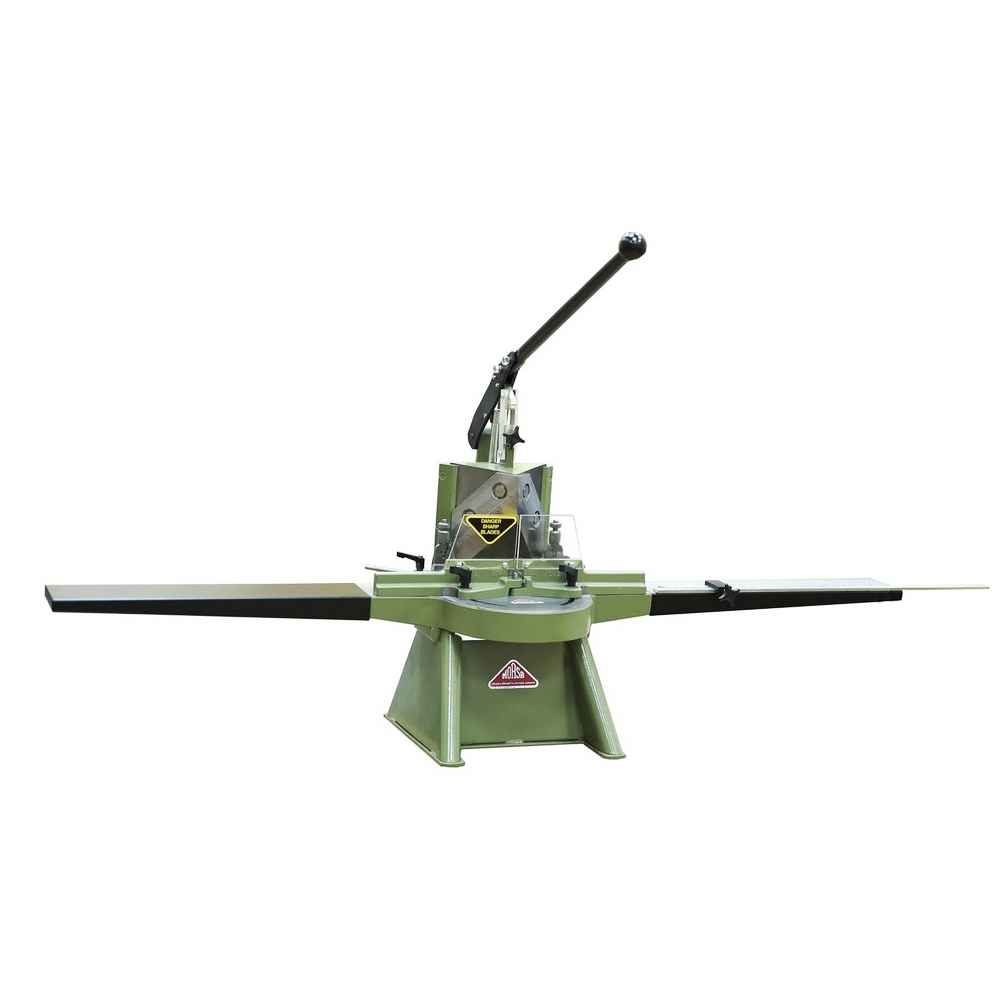 A gép jobb oldalán található fogantyú segítségével válthatunk a vágási pozíciók között (6 mm). Az egyik (1.) pozícióban a kések durva, elsődleges vágást végeznek a kékperetlécen, a másik (2.) pozícióban pedig úgy nevezett “borotva” vágást készít.A gépezet bal és jobb oldalsó szárnnyakkal van ellátva. A a méretek beállításához a jobb szárnyon mozgatható támasztékot helyeztek el. A képkeretlécek irányító sarkai szabályozódnak, amelynek köszönhetően sokszögű keretek kivágására is van lehetőség.