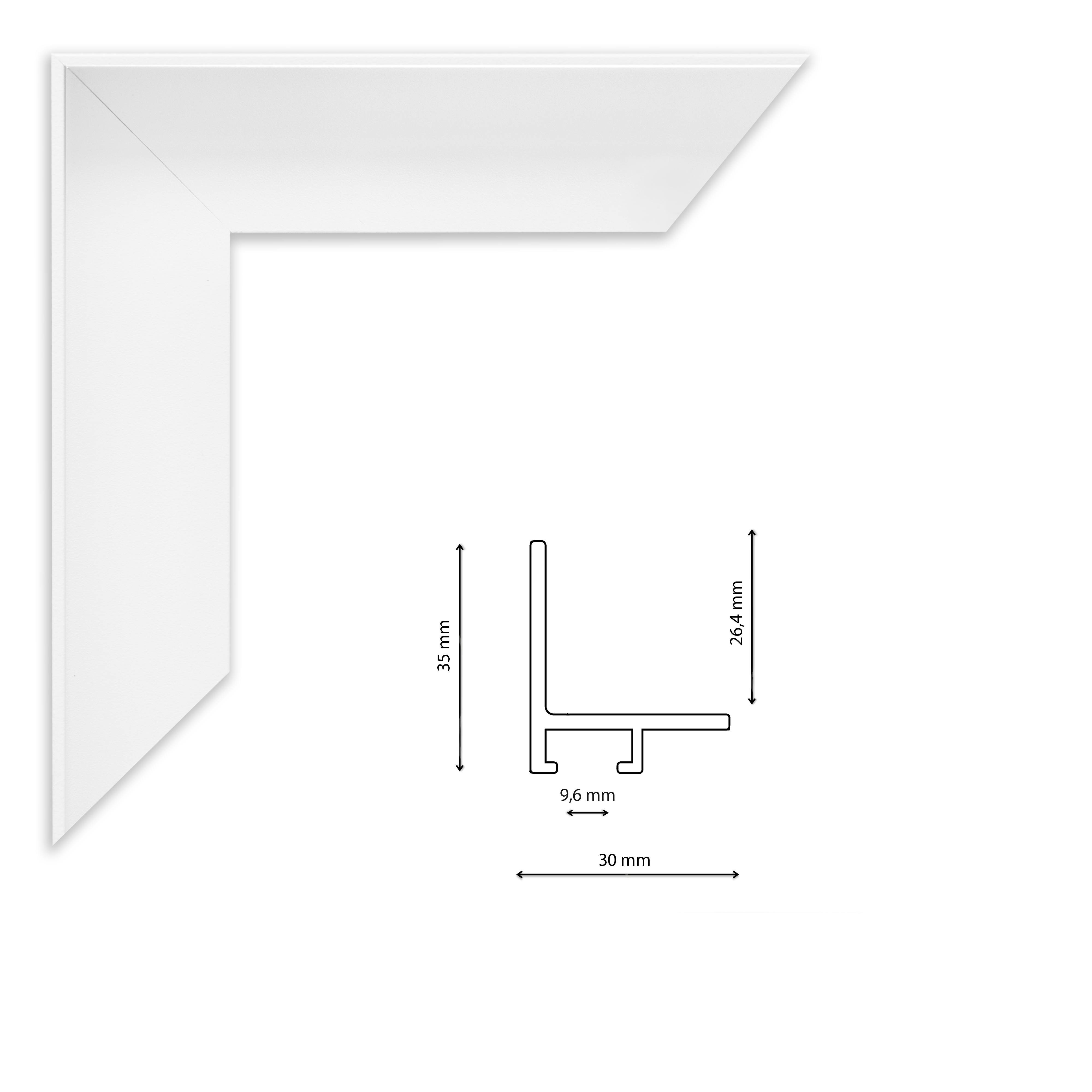 Alumínium képkeretléc MG432-22 Kérdése van? Matt fehér alumínium kiállító keret vakrámázott képekhez.