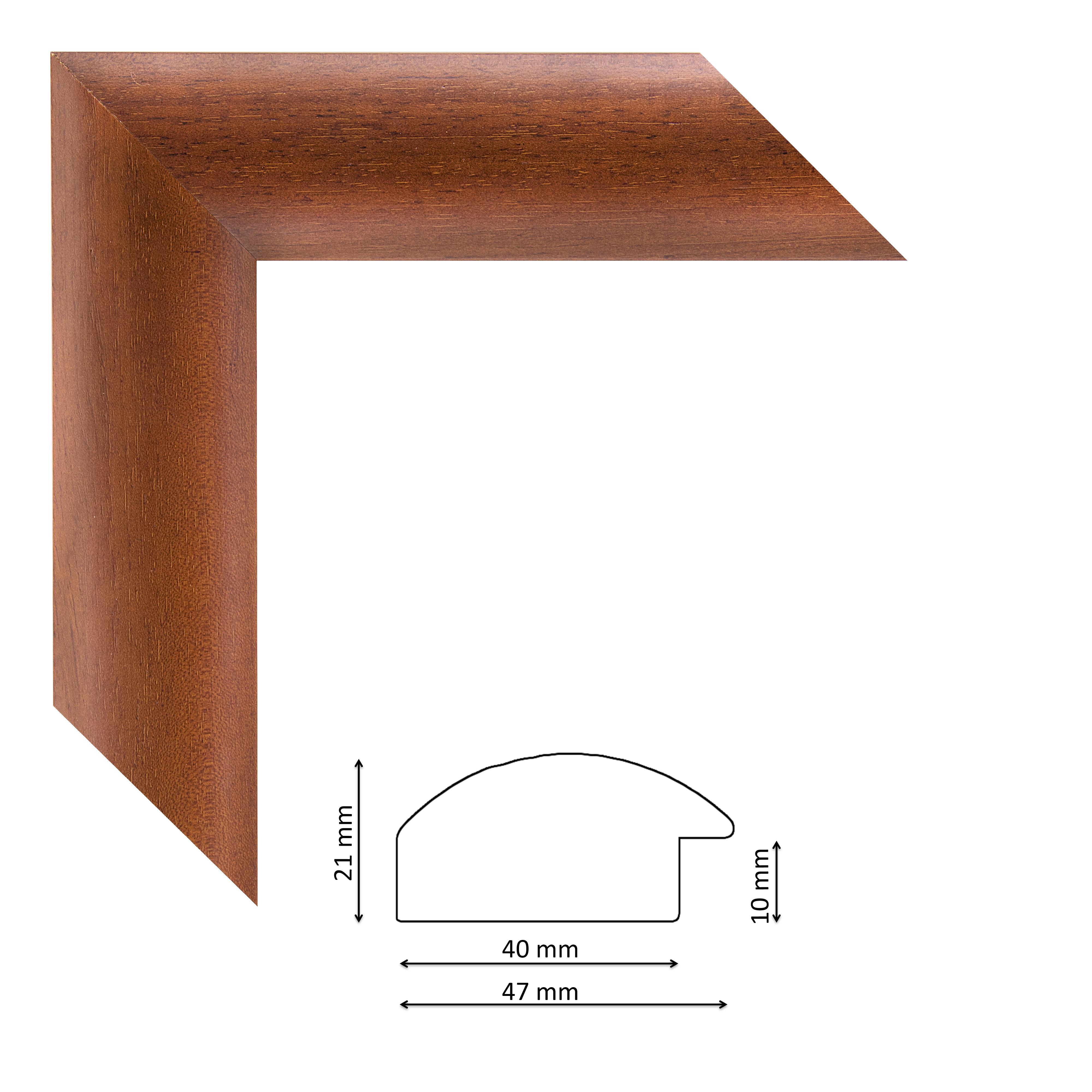 Képkeretléc 010 a383 Kérdése van? Gömbölyített profilú, modern olasz képkeretléc pácolt cseresznyebarna színben, trópusi fából.