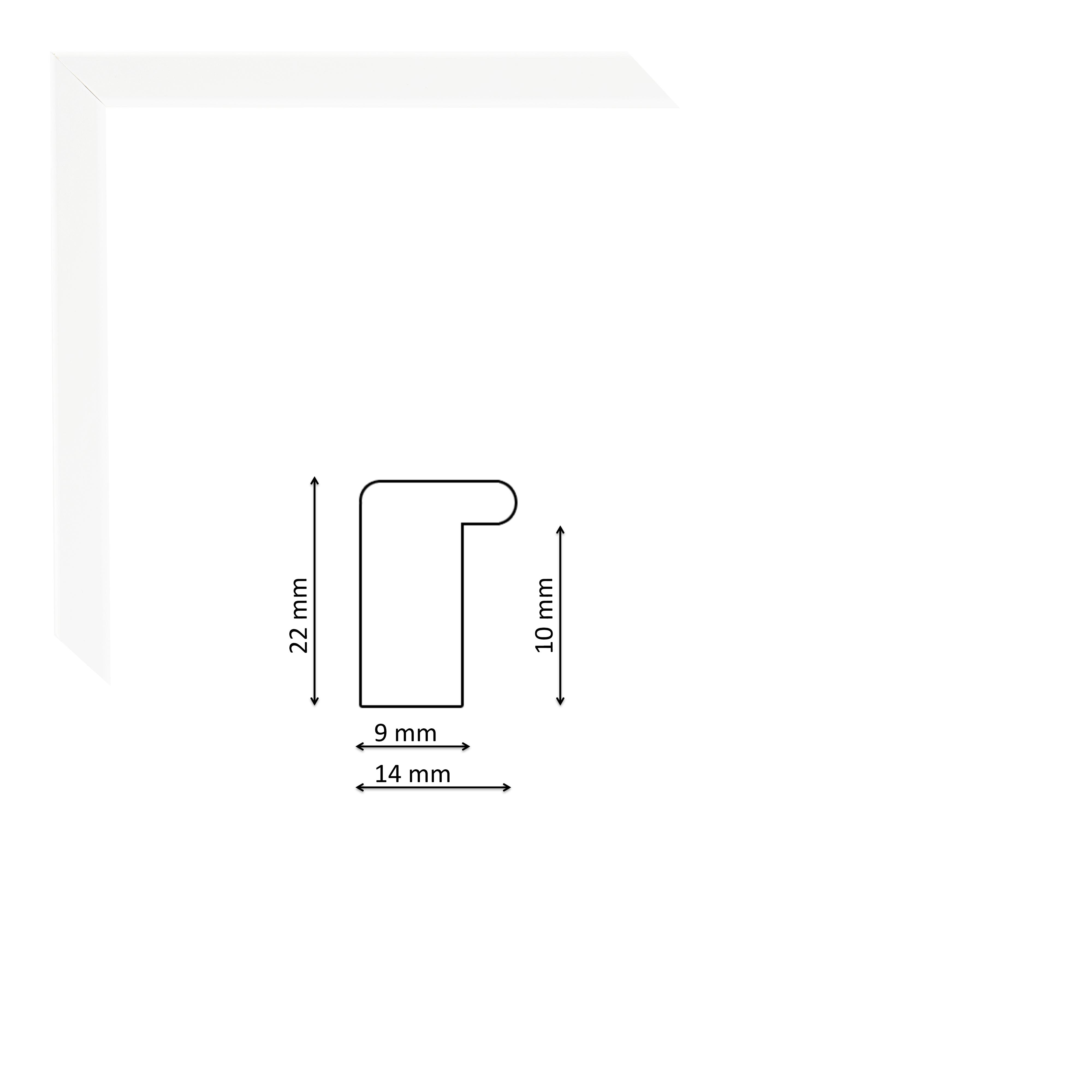 Enyhén magasfalcú, keskeny olasz képkeretléc matt fehér színben.