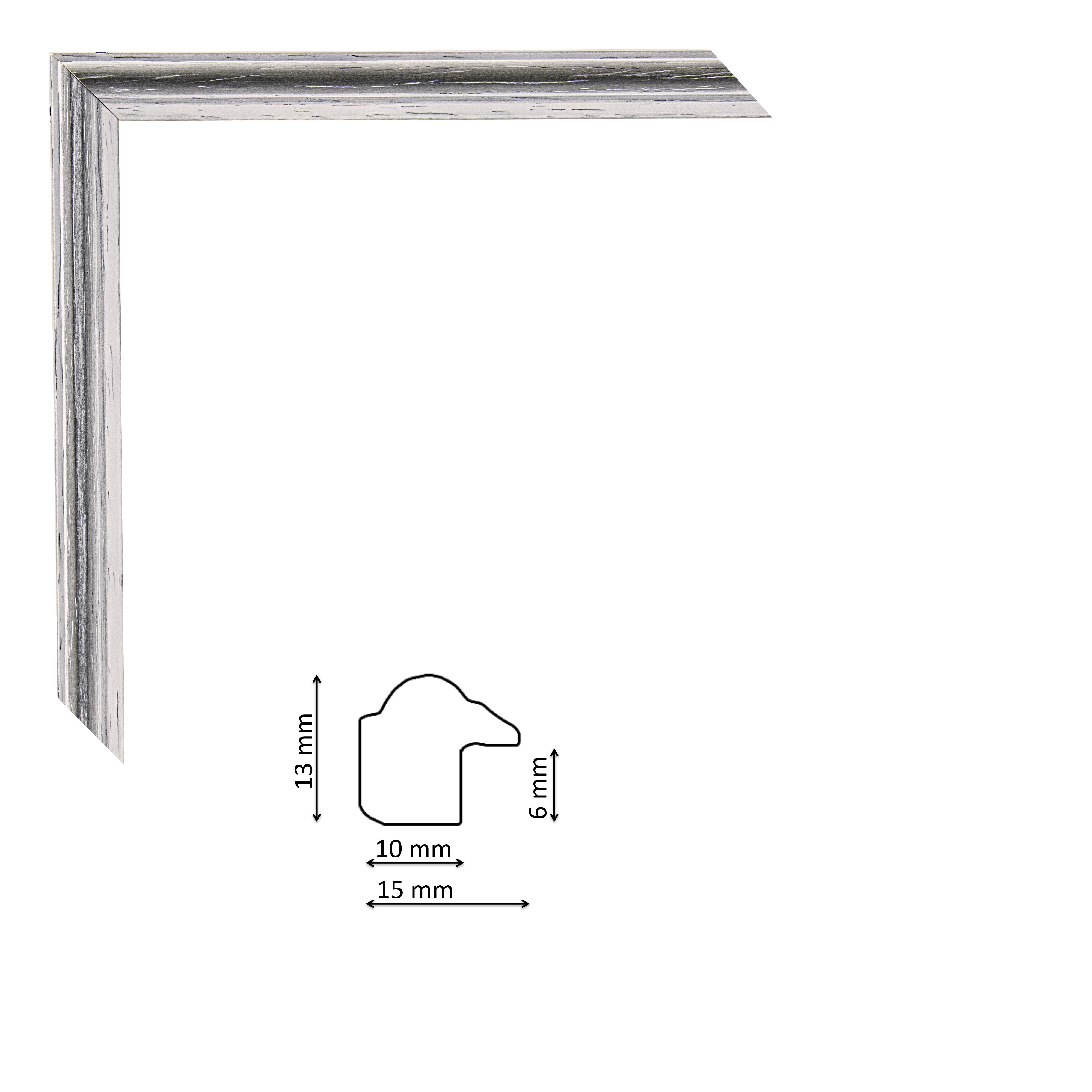 Keskeny képkeret szürke színben, trópusi fából.