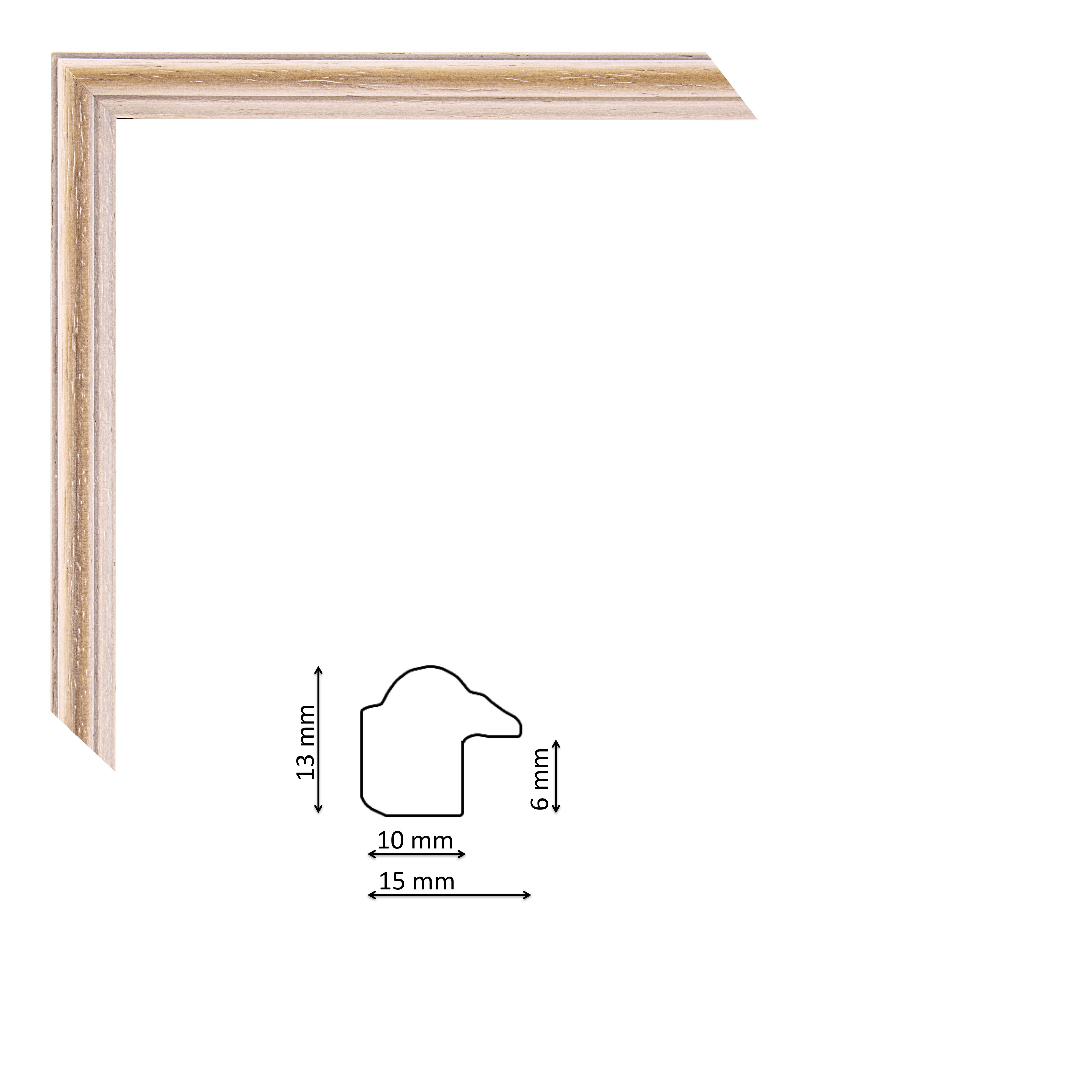 Keskeny képkeret natur-fehéres színben, trópusi fából.