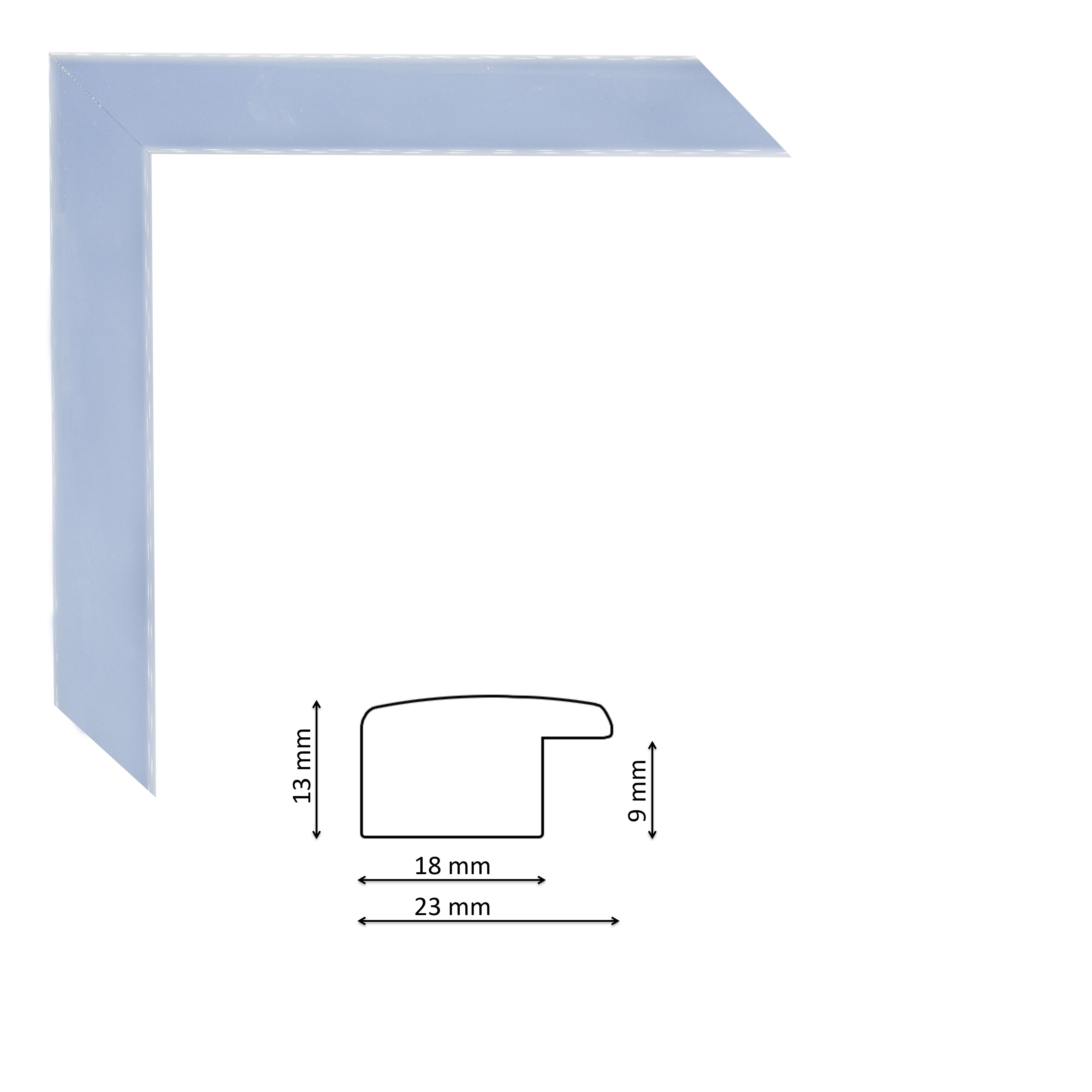 Képkeretléc 047 a056 Kérdése van? Keskeny modern képkeretléc enyhén domború profilban, lakk pasztel halványkék színben.