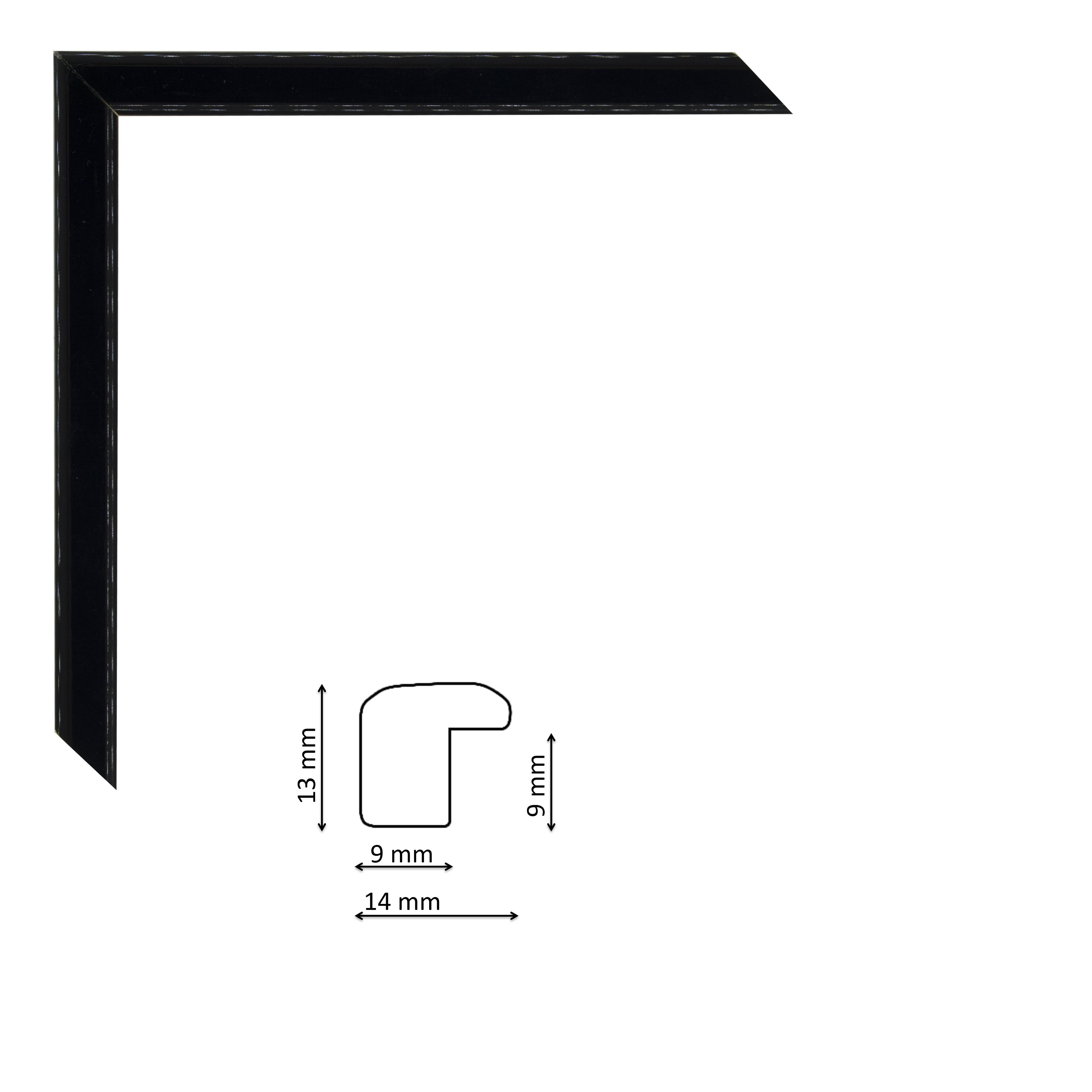Lakk fekete fa képkeretléc, keskeny, enyhén domború profillal.