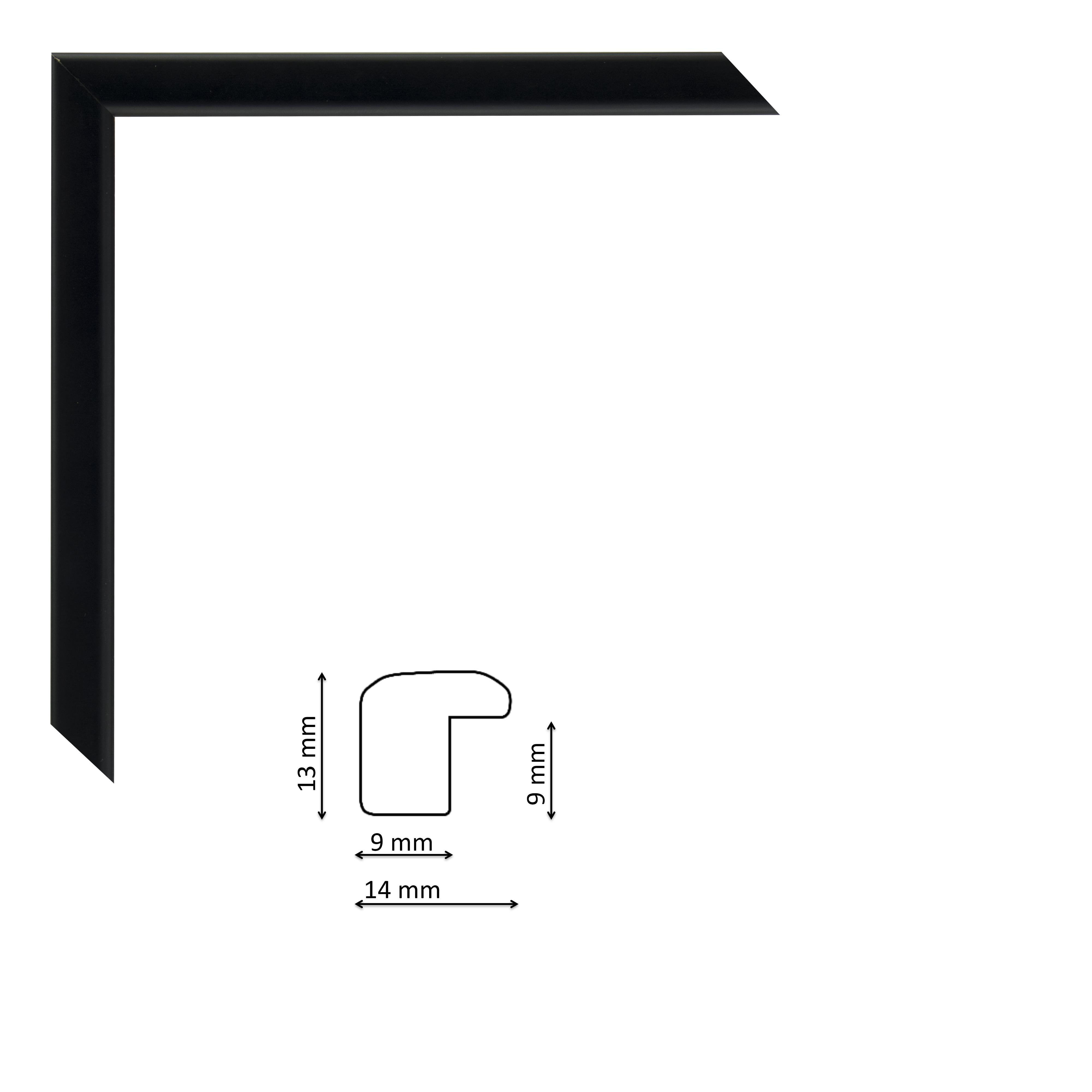 Matt fekete fa képkeretléc, keskeny, enyhén domború profillal.