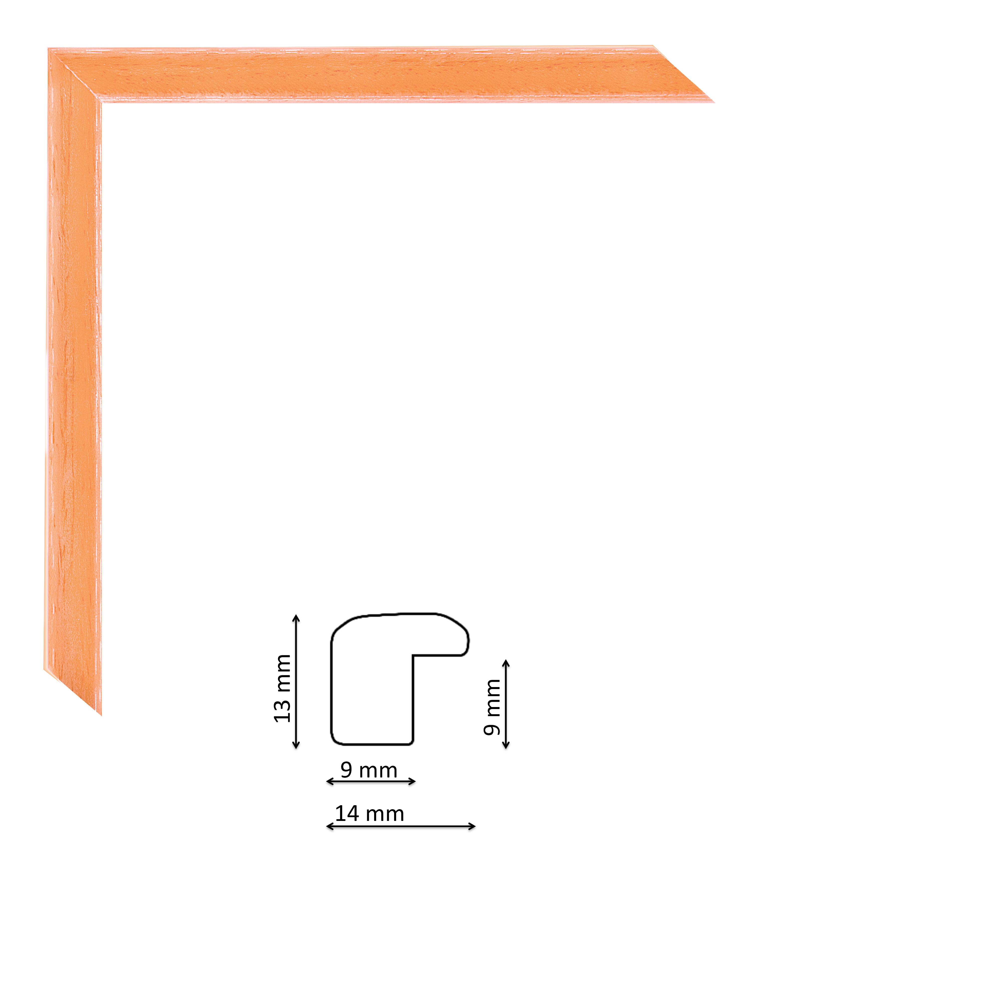 Képkeretléc 052 a112 Kérdése van? Lakkos felületű, pácolt narancssérga fa képkeretléc, keskeny, enyhén domború profillal.