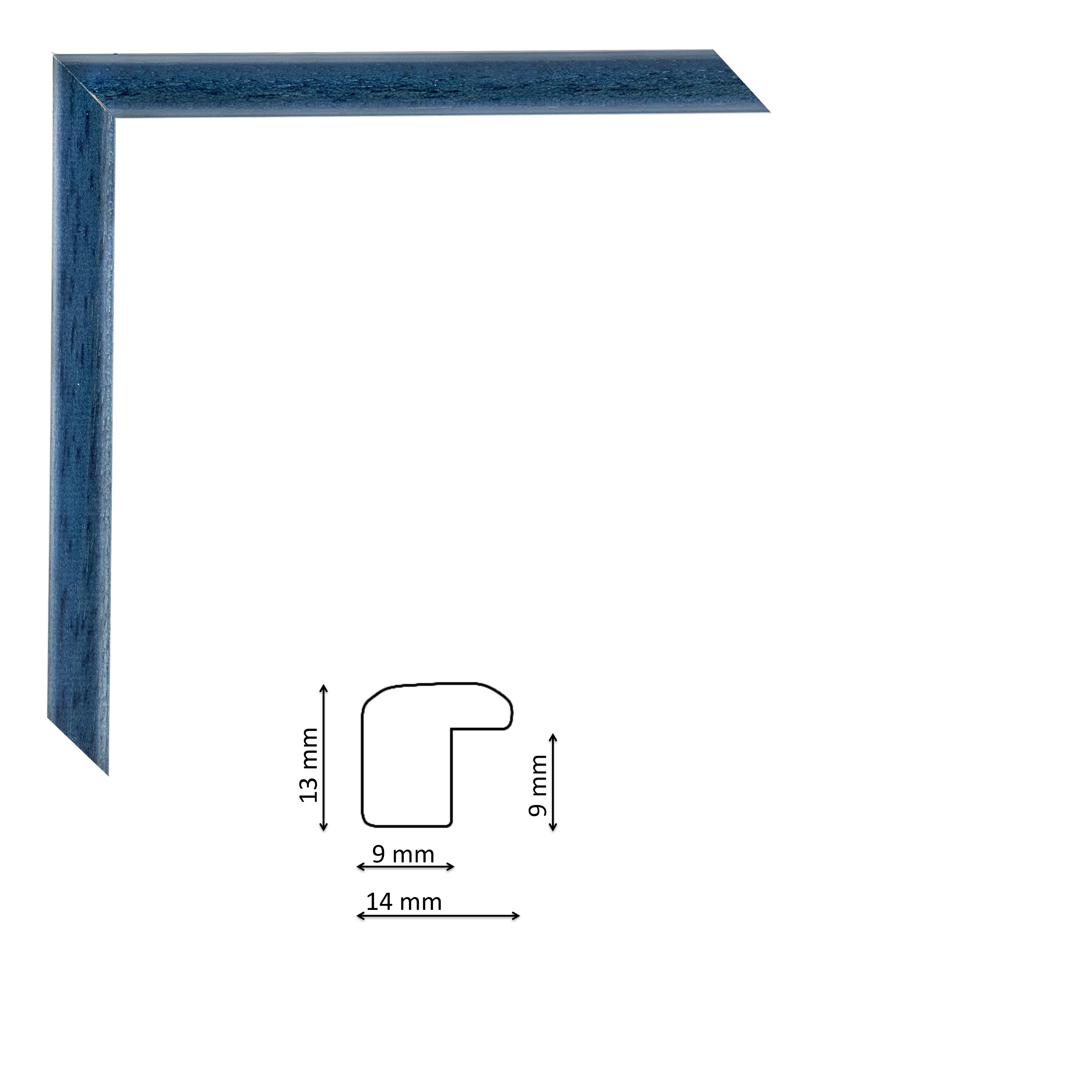 Pácolt sötétkék képkeretléc, keskeny, enyhén domború profillal.
