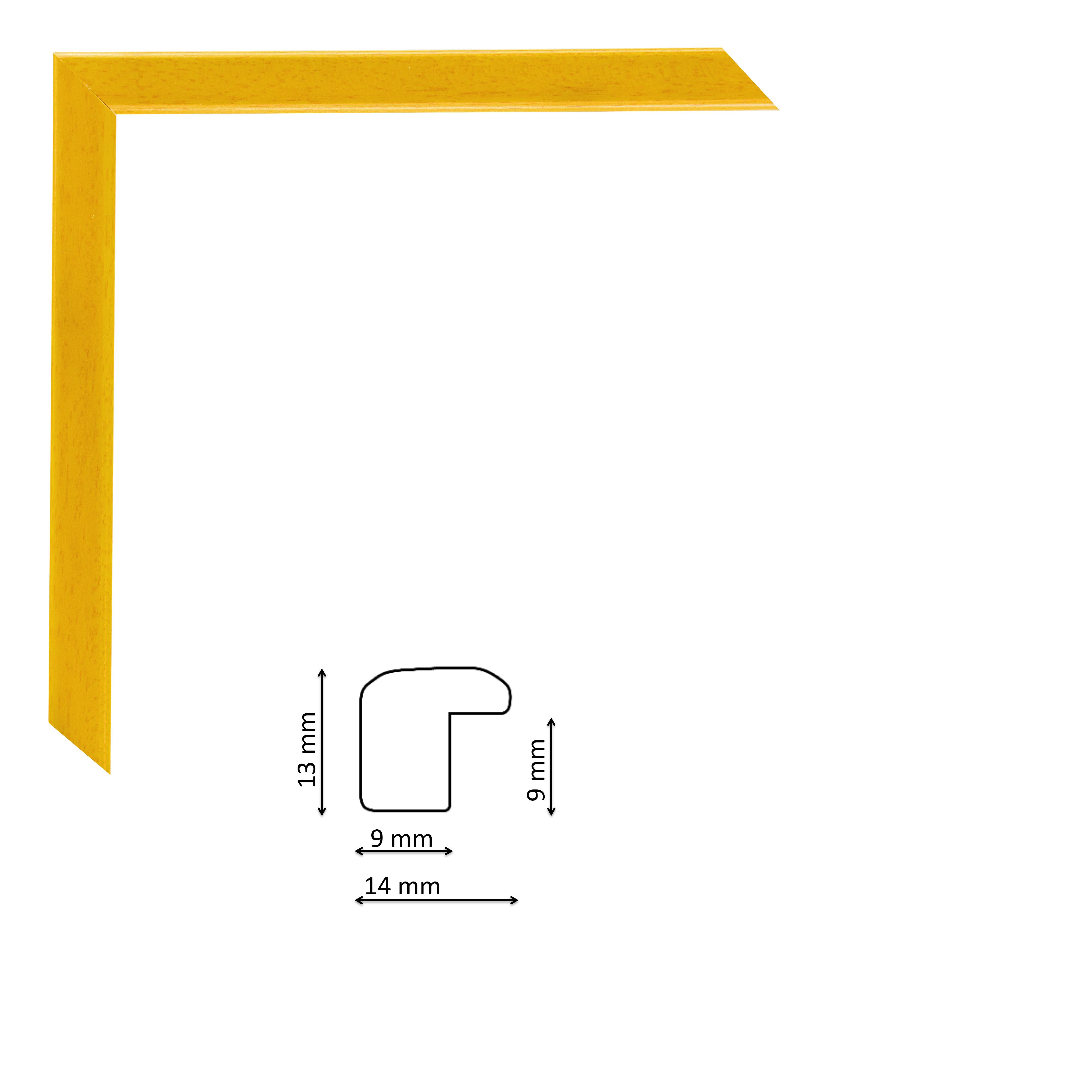 Pácolt sárga fa képkeretléc, keskeny, enyhén domború profillal.