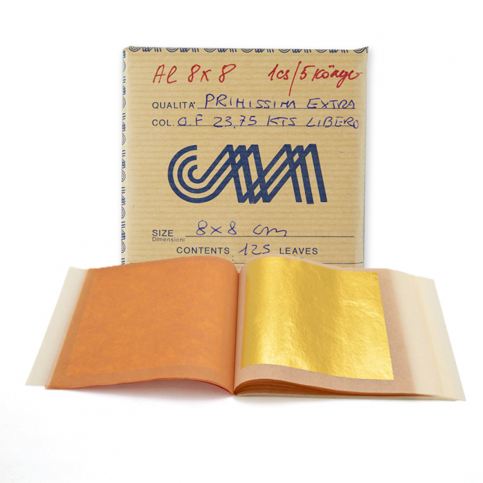 Arany lap 23,75K (8x8 cm), 25 lap/könyv Kérdése van? Aranyozásnál használható valódi arany lapok 8x8cm méretben.