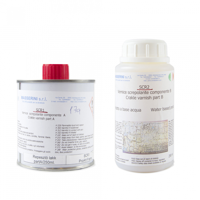 Kétfázisú repesztőlakk (A és B) Kérdése van? A kétkomponensű repesztőlakk, mellyel pl. a régi dísztárgyakon, kereteken az idő elteltével megrepedezett lakkréteget imitálják.