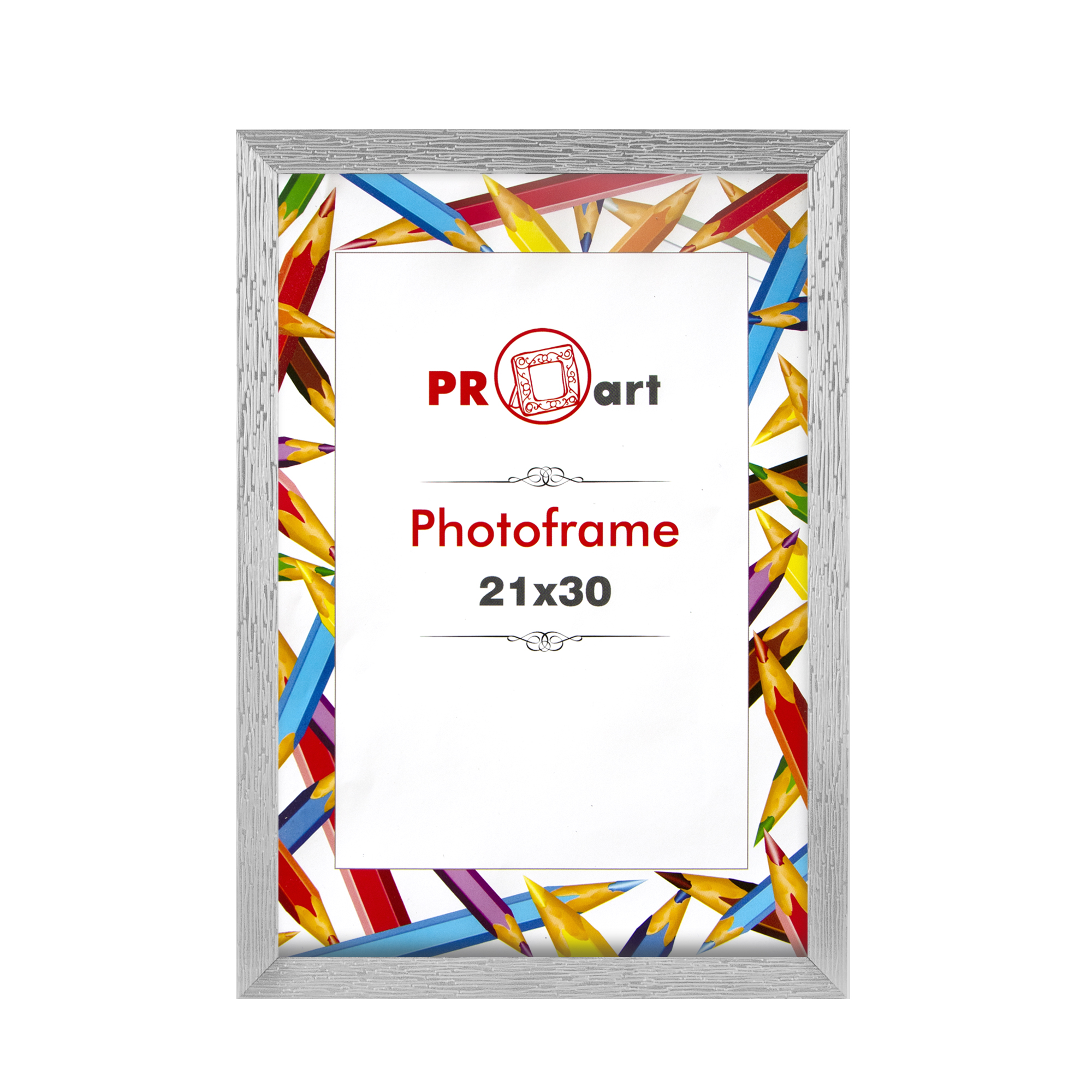 Fotó keret 21x30cm - 141 Kérdése van? Kész fotó képkeret 21x30cm méretben, műanyag kivitelben, üveggel, hátlappal és akasztóval ellátva. Ezüst színben, erezett mintával.