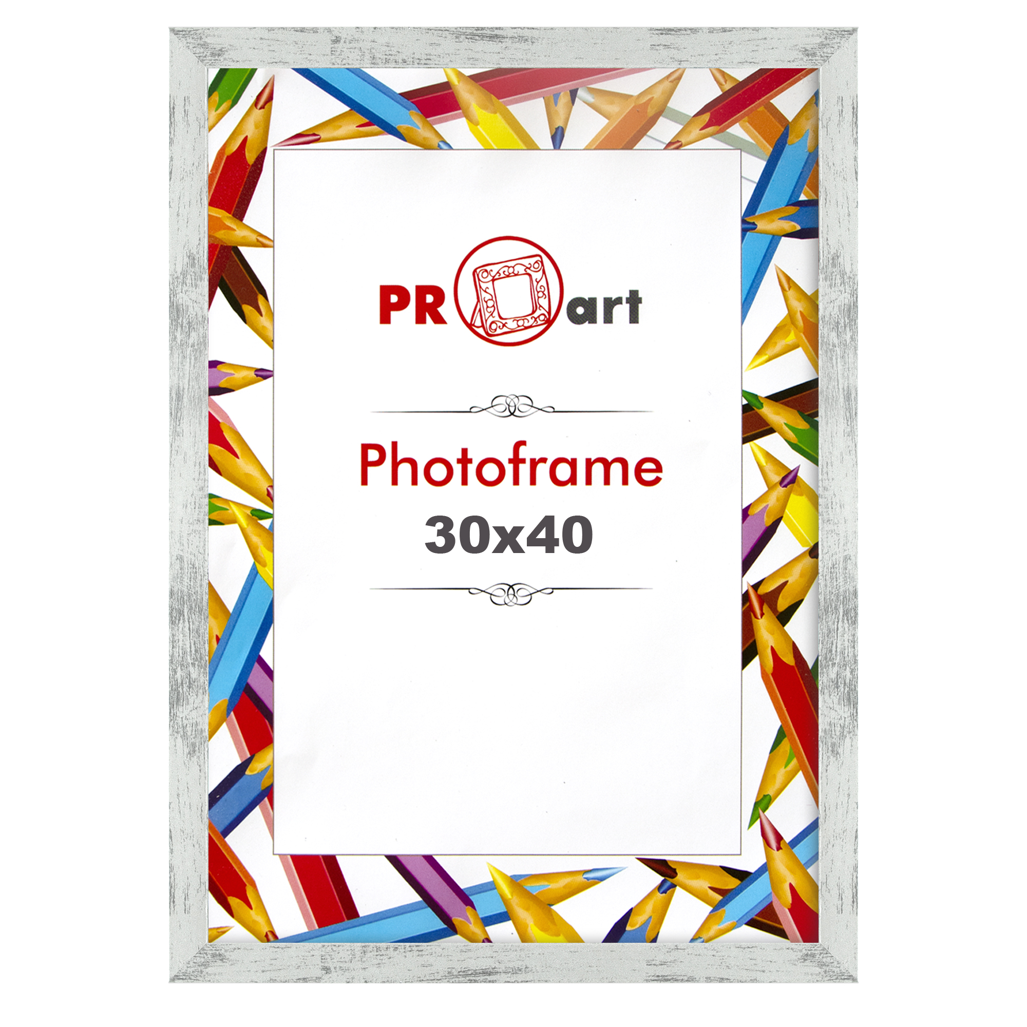 Fotó keret 30x40cm - 11 Kérdése van? Kész fotó képkeret 30x40cm méretben, műanyag kivitelben, üveggel, hátlappal és akasztóval ellátva. Fehér színben, ezüstös koptatásokkal.