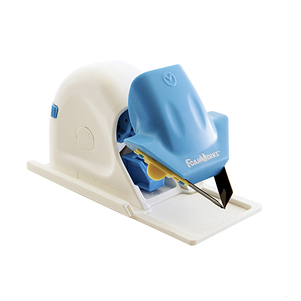 A vonalzóra helyezve, „V” alakban elhelyezkedő két vezető pengéjének segítségével vághatunk bele a hablemezekbe, maximum 13mm vastagságig. A pengék könnyedén cserélhetők, vágó mélységük a hátul található forgantyú segítségével állíthatók.