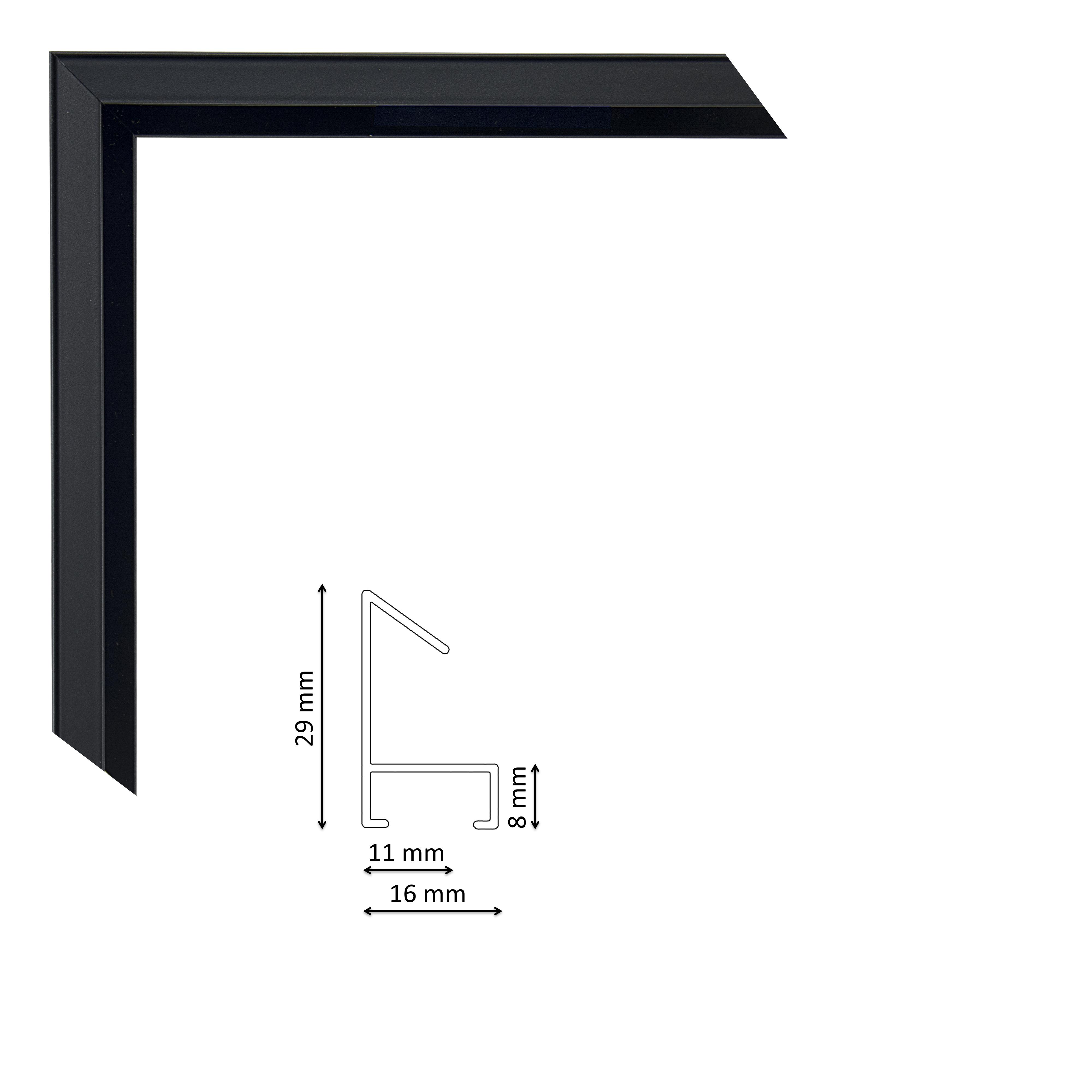 Aluminium képkeretléc IM1021-271 Kérdése van? Modern, keskeny alumínium léc matt fekete kivitelben, befelé mélyülő profilban.