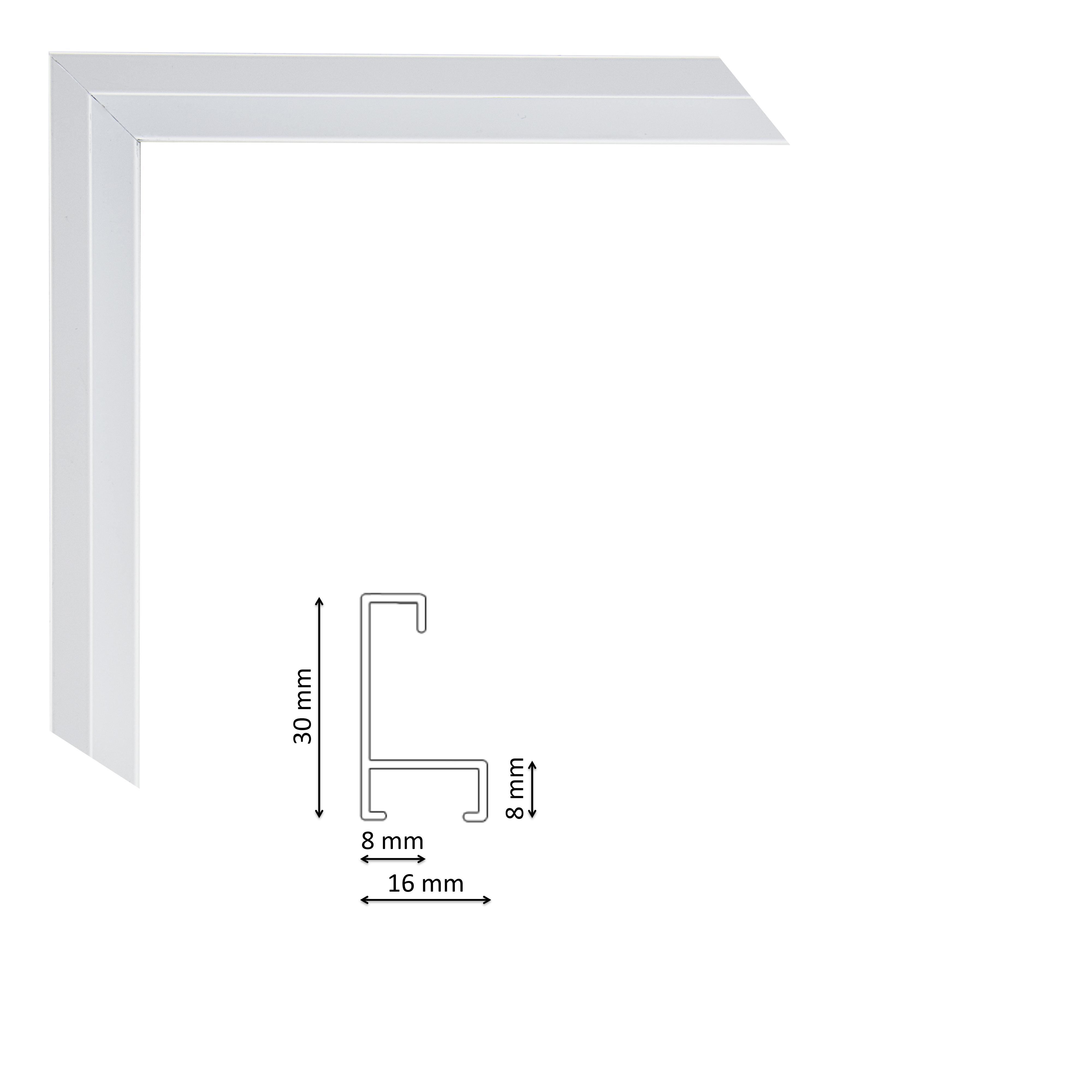 Aluminium képkeretléc IM1023-281 Kérdése van? Modern, mélyfalcos alumínium léc matt fehér kivitelben, szögletes profilban.