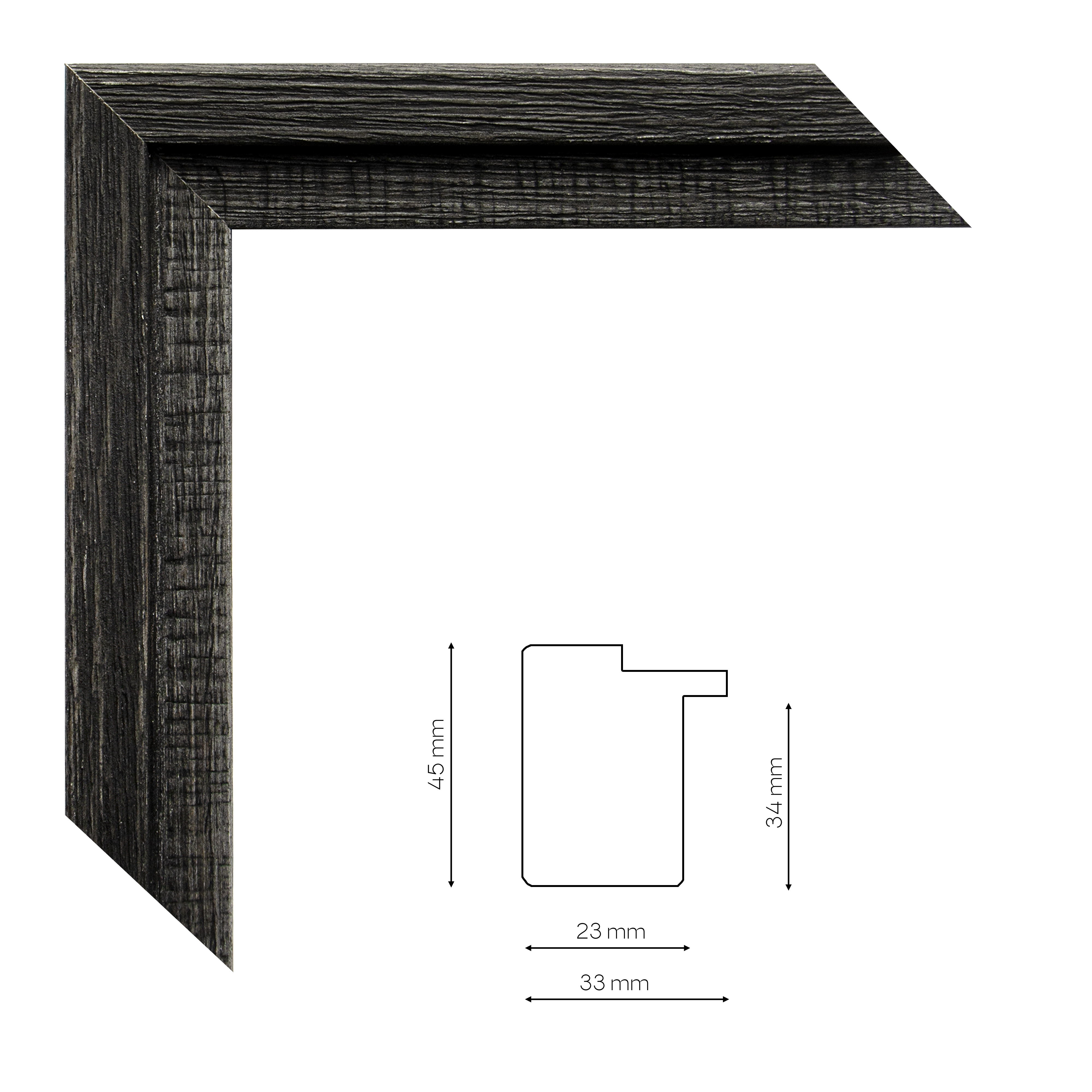 Mélyfalcú olasz képkeretléc, rusztikus jelleggel. Magasított profiljának köszönhetően kíváló választás lehet vászonképekhez. A keret különlegessége a festett hatású fólia, melynek felületét halvány ezüstös csíkok borítják, ezáltal a fény rávetülésével a felületén enyhén csillogást eredményezve.