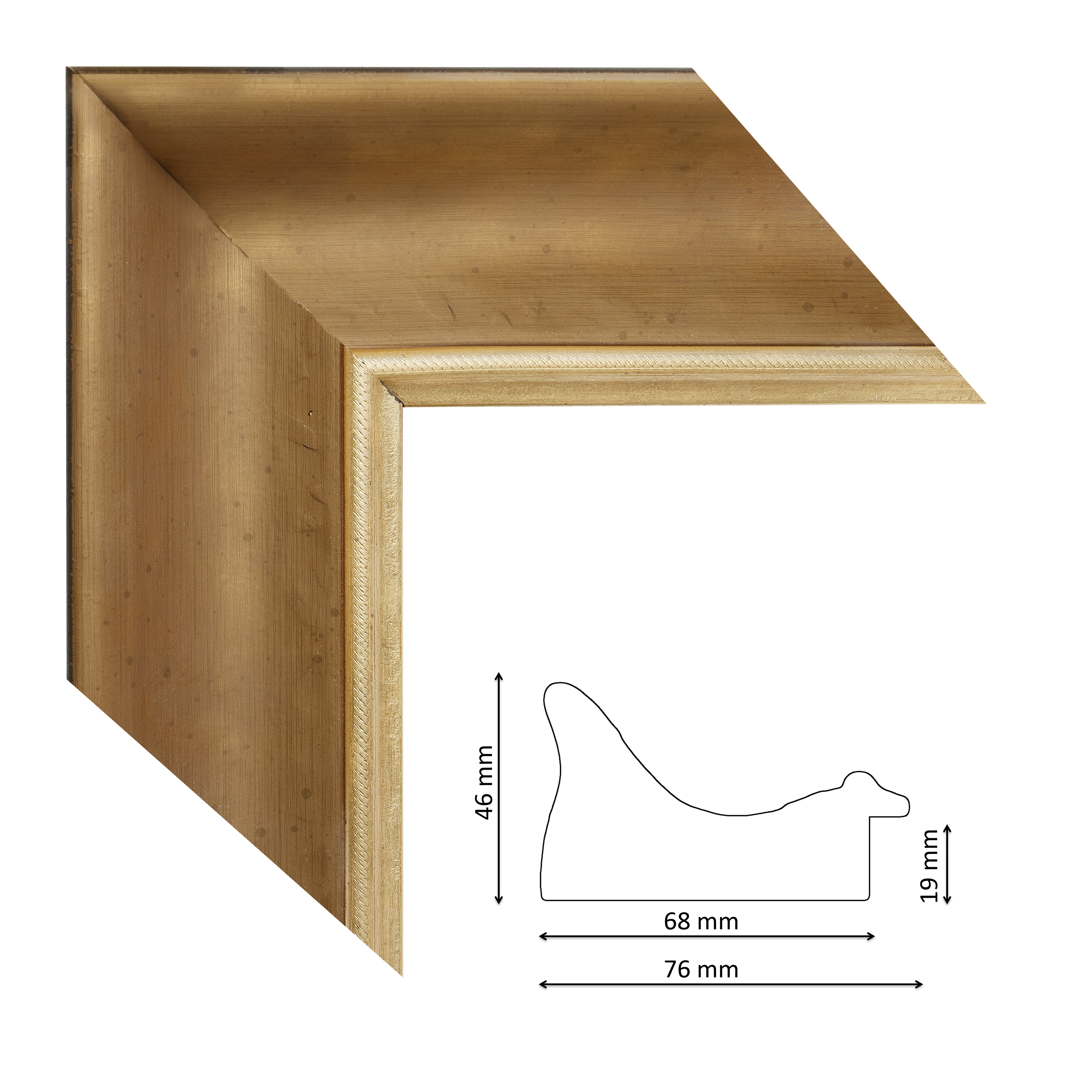 Képkeretléc B6170-00 Kérdése van? Enyhén antikolt hatású arany színű olasz képkeretléc trópusi fából.