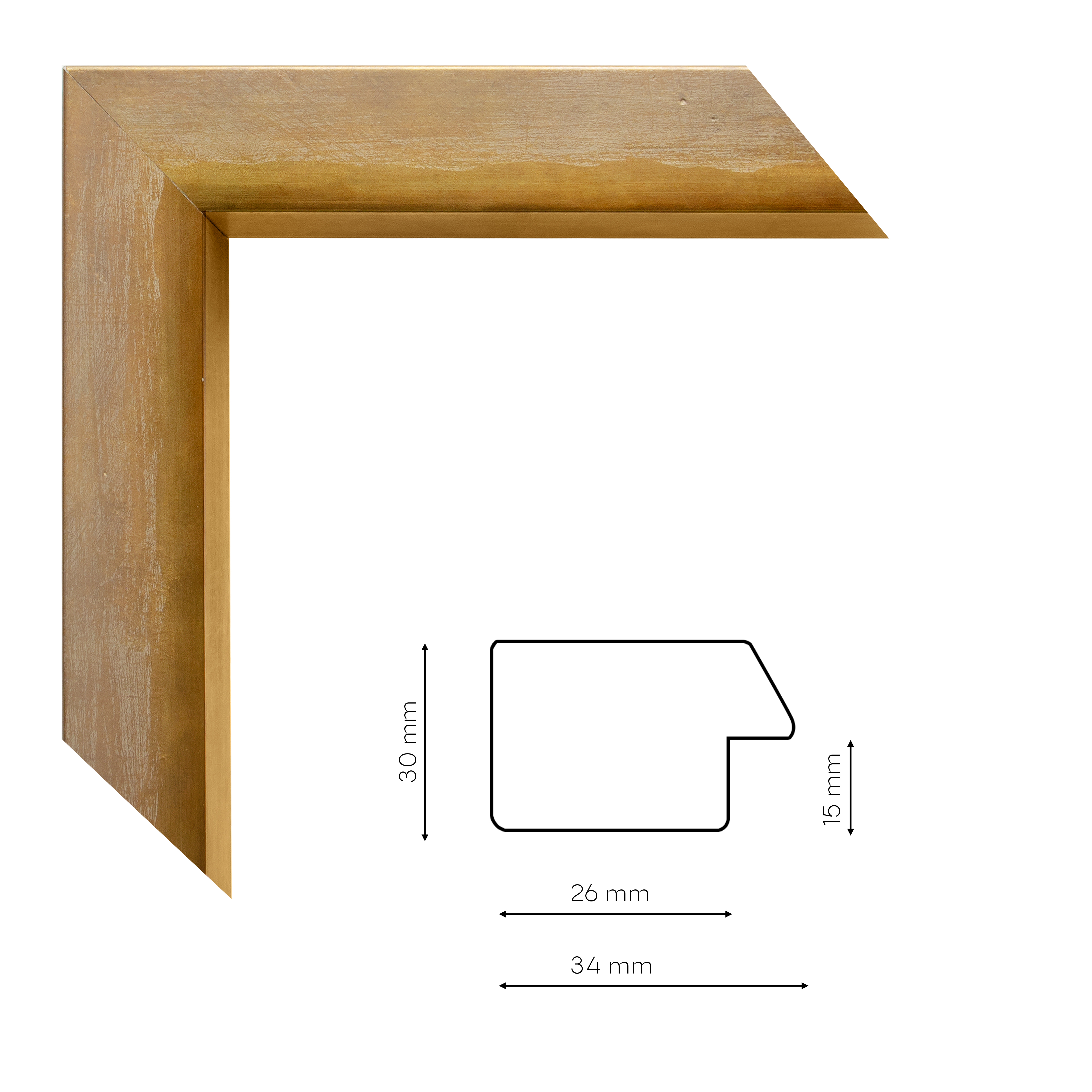 Képkeretléc B7020-02 Kérdése van? Enyhén antikolt hatású arany színű olasz képkeretléc trópusi fából.