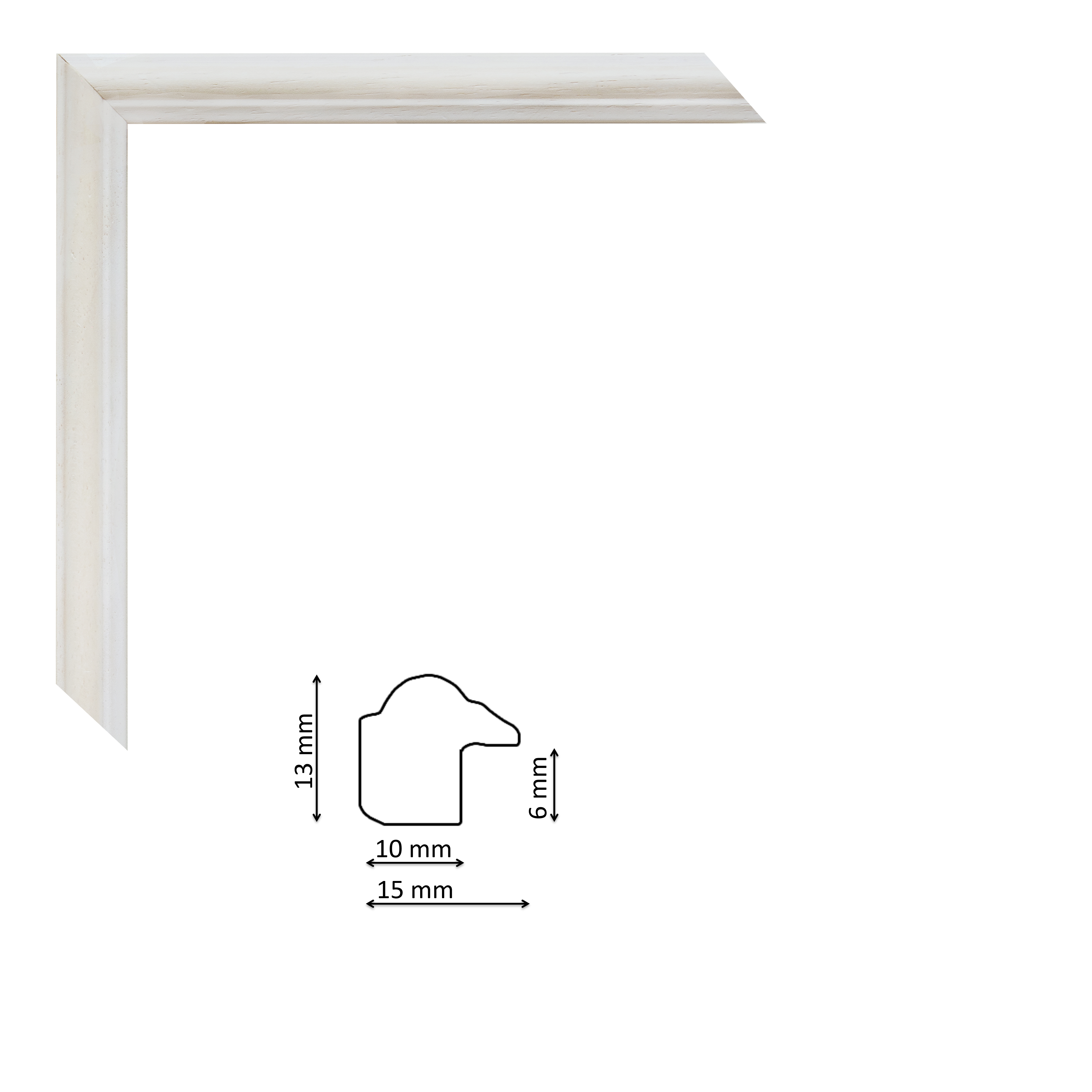 Keskeny képkeret festett fehér színben, trópusi fából.
