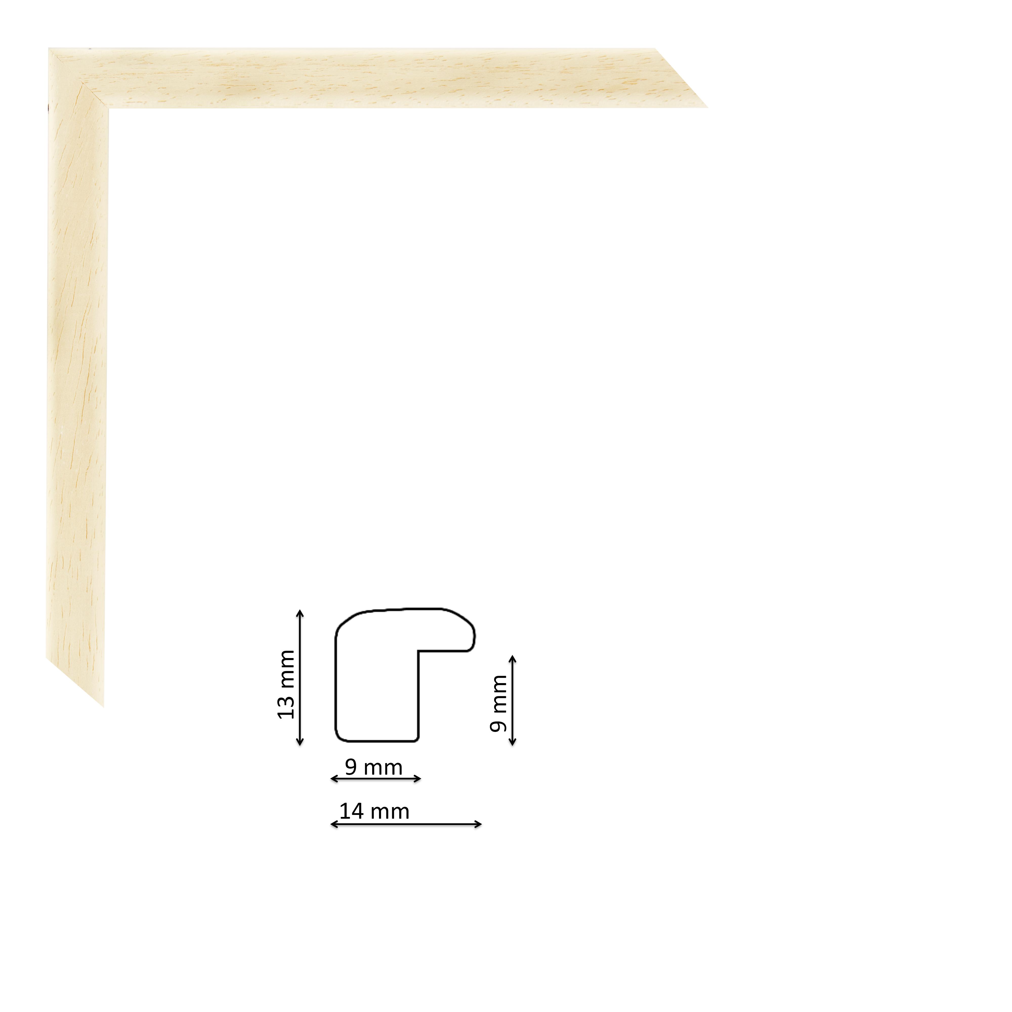 Nyers fa olasz képkeretléc, keskeny, enyhén domború profillal.