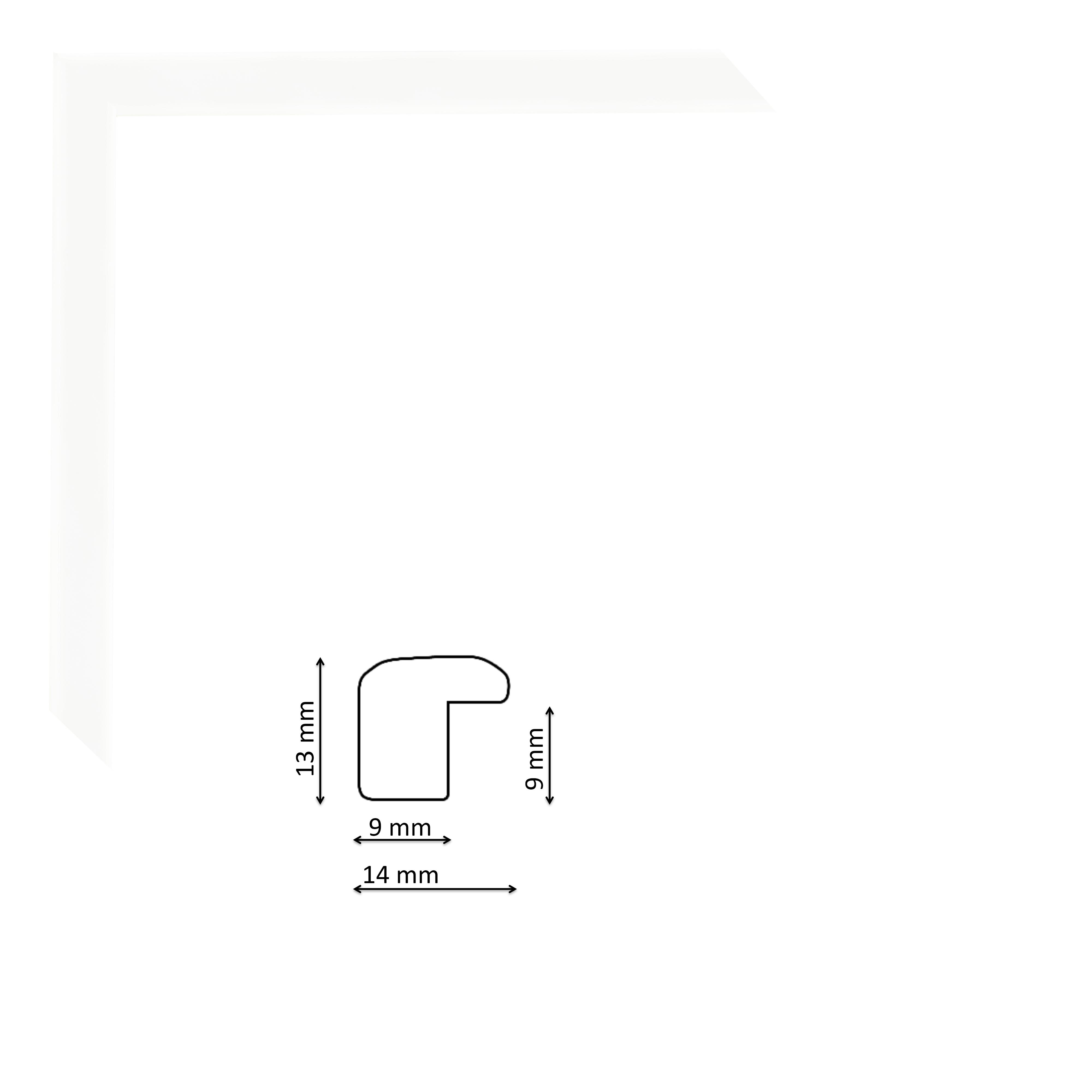 Matt fehér fa képkeretléc, keskeny, enyhén domború profillal.
