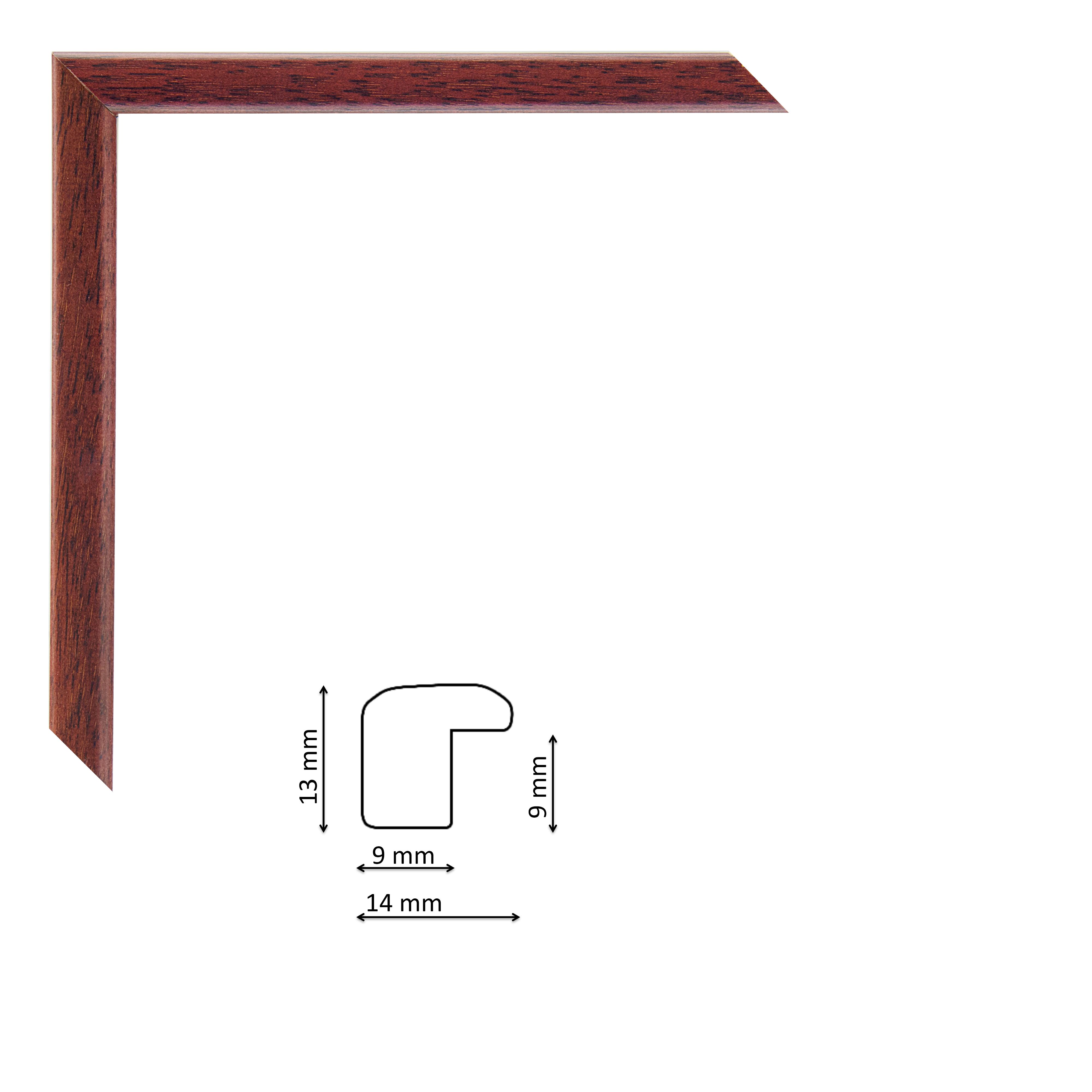 Pácolt bordó fa képkeretléc, keskeny, enyhén domború profillal.