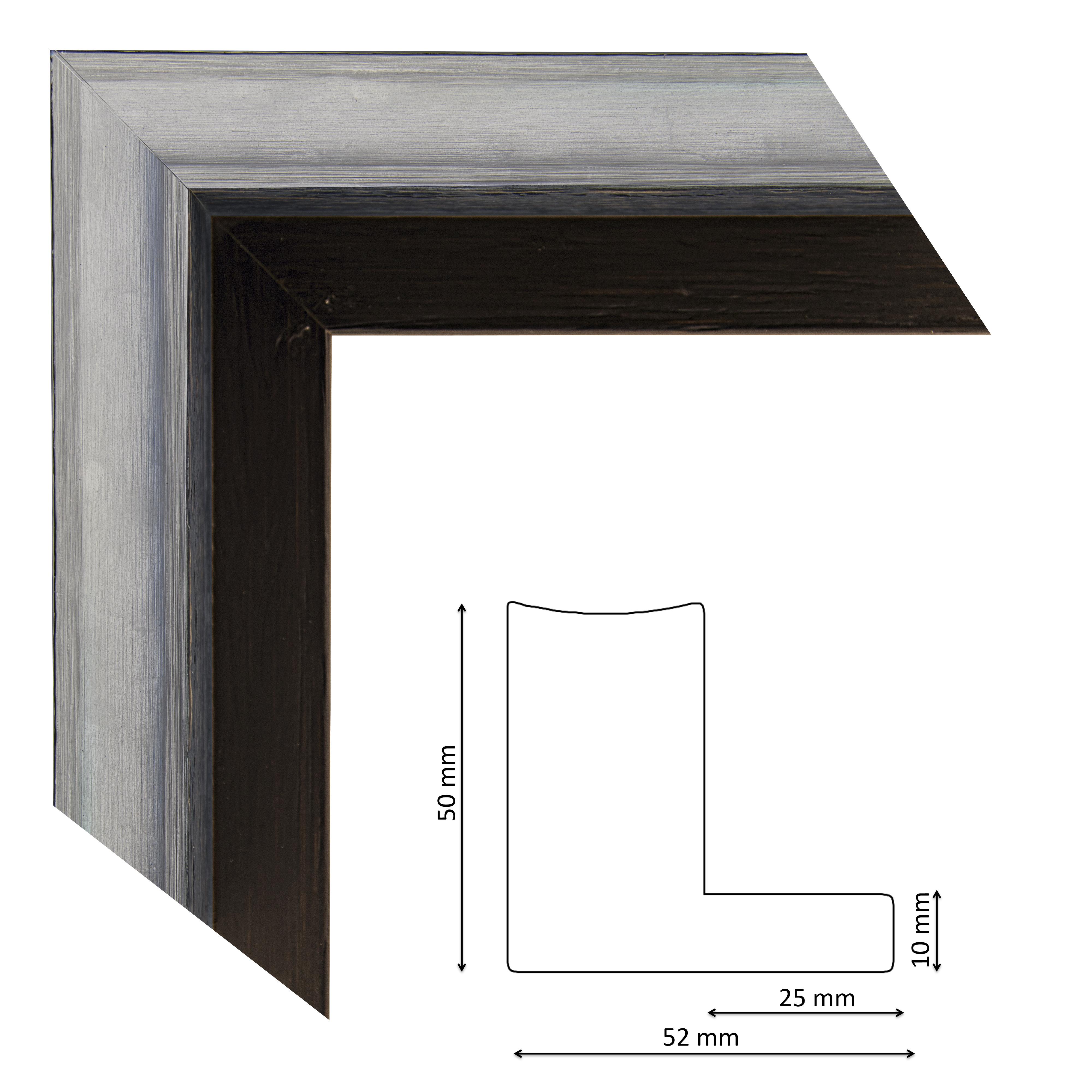 Kiállító keret ezüst éllel, fekete színben, trópusi fából.