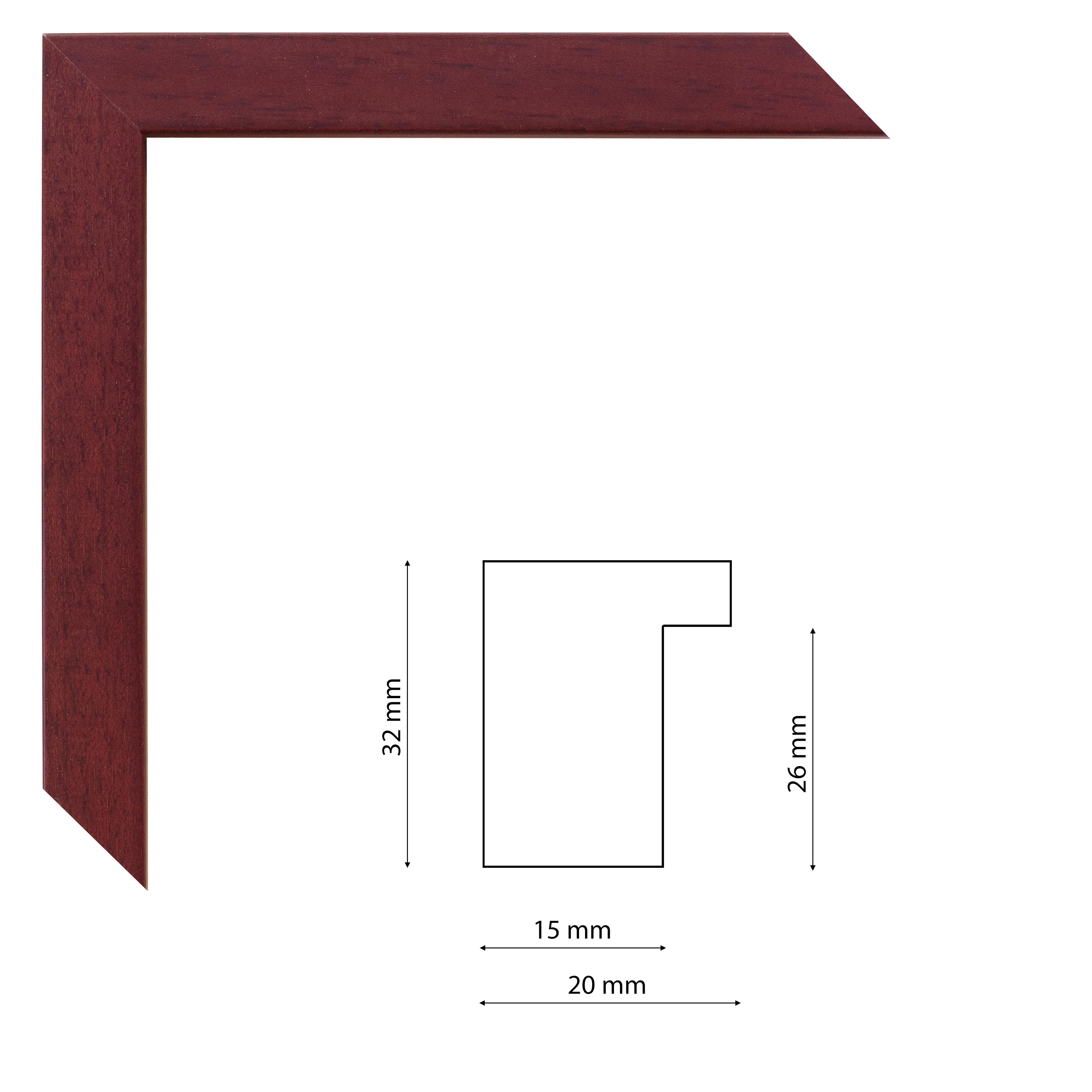 Mélyfalcú pácolt hatású bordó színű képkeretléc trópusi fából.