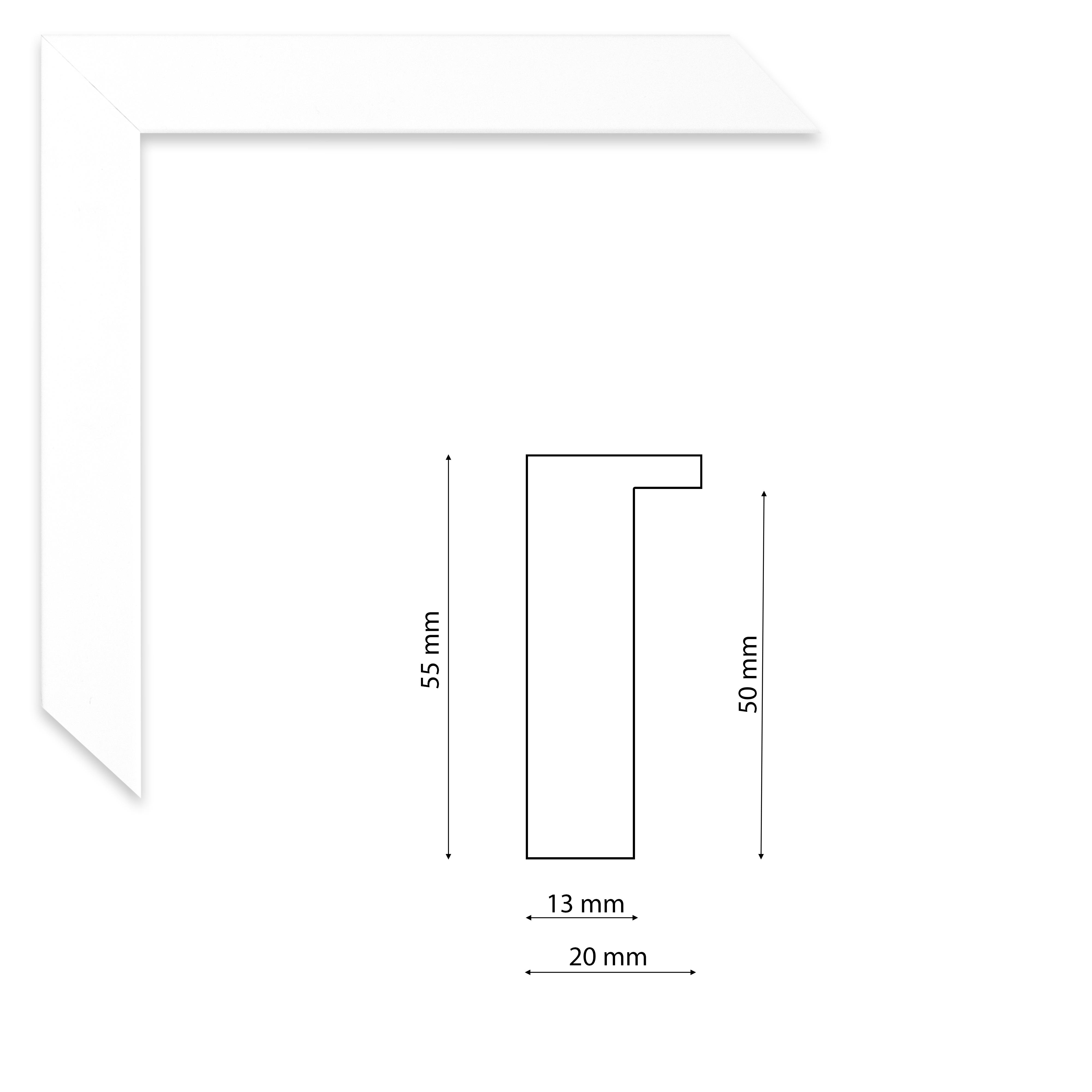Mélyfalcú matt fehér képkeretléc trópusi fából.