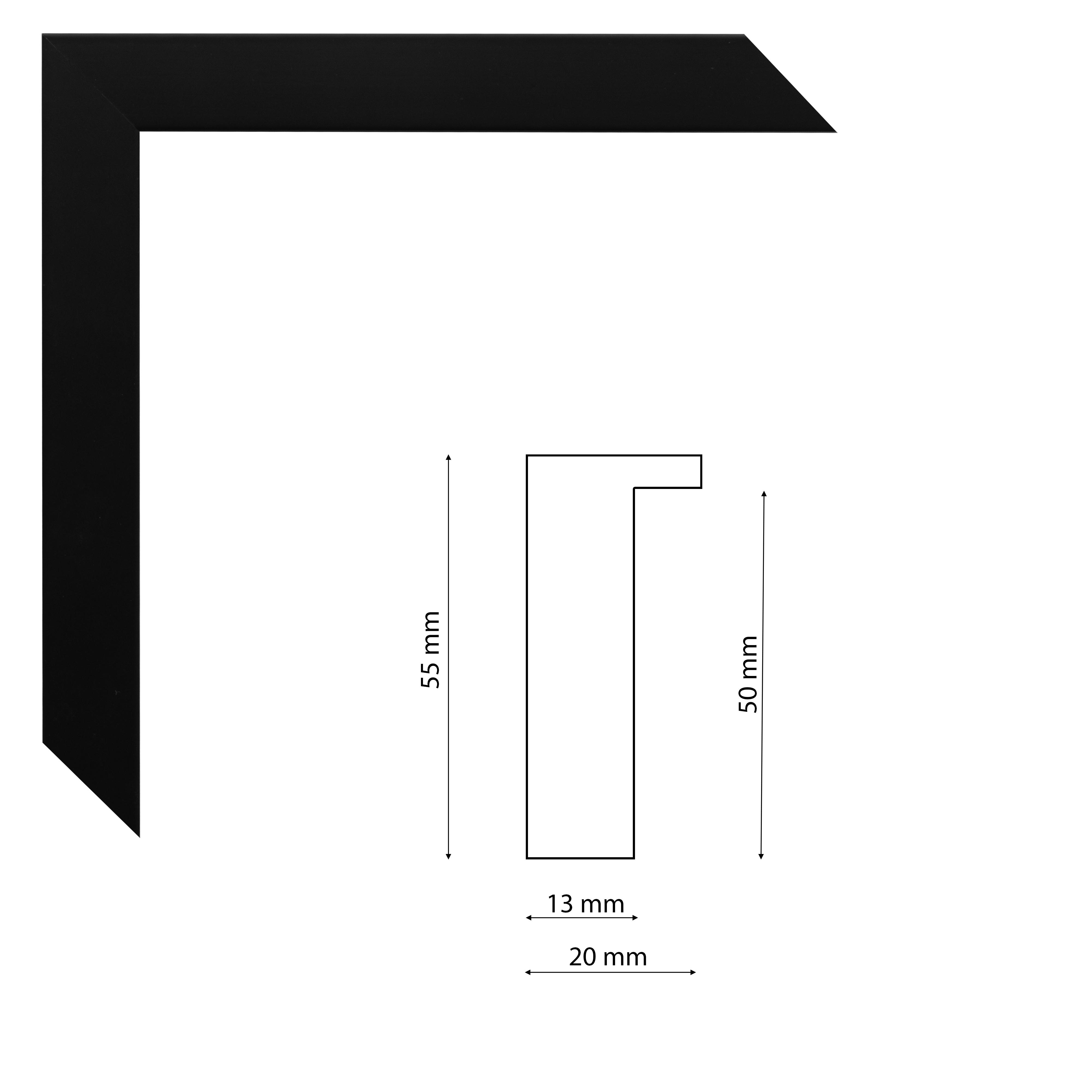 Mélyfalcú matt fekete képkeretléc trópusi fából.