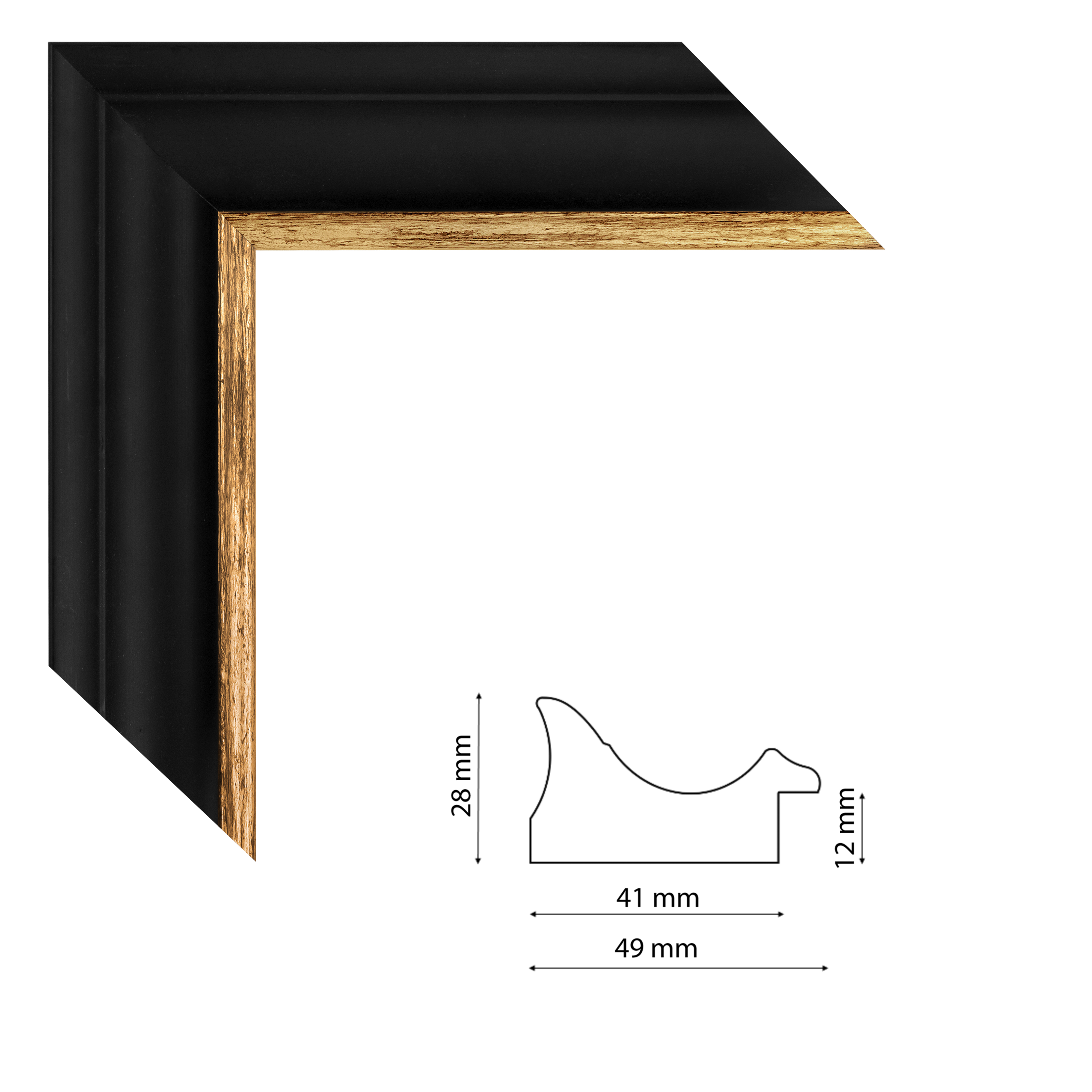 Képkeretléc HR3484-602 Kérdése van? Klasszikus formájú, fekete színű, arany belsejű képkeretléc trópusi fából.