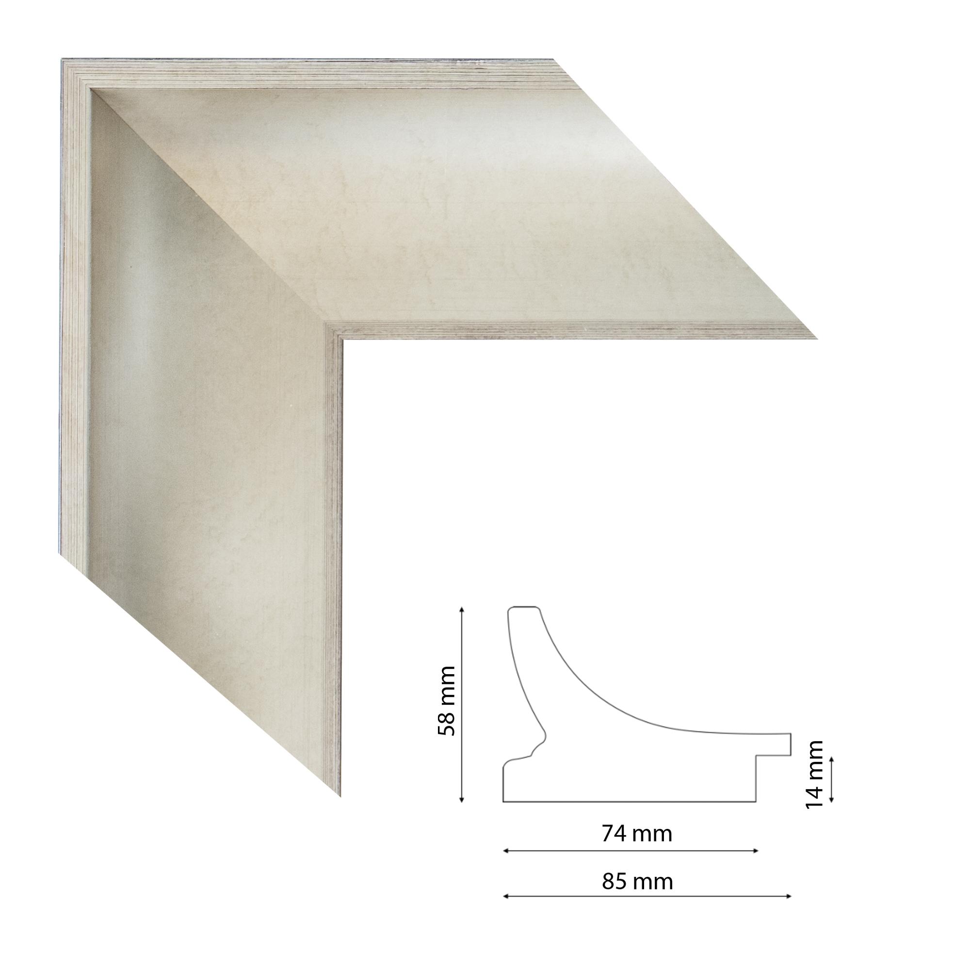 Befelé mélyülő képkeretléc ezüst színben, trópusi fából.