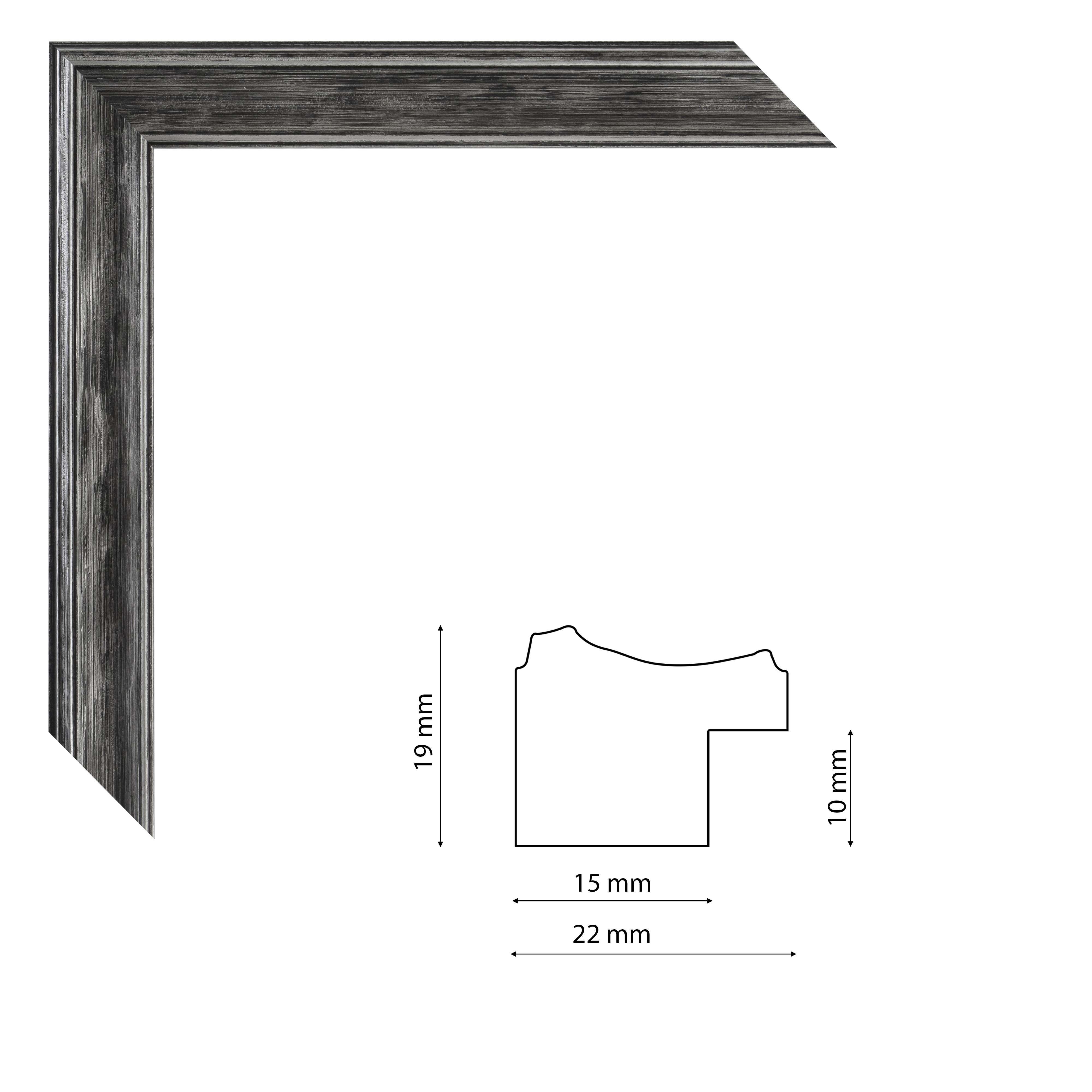 Márványos hatású grafit színű keskeny képkeretléc trópusi fából.