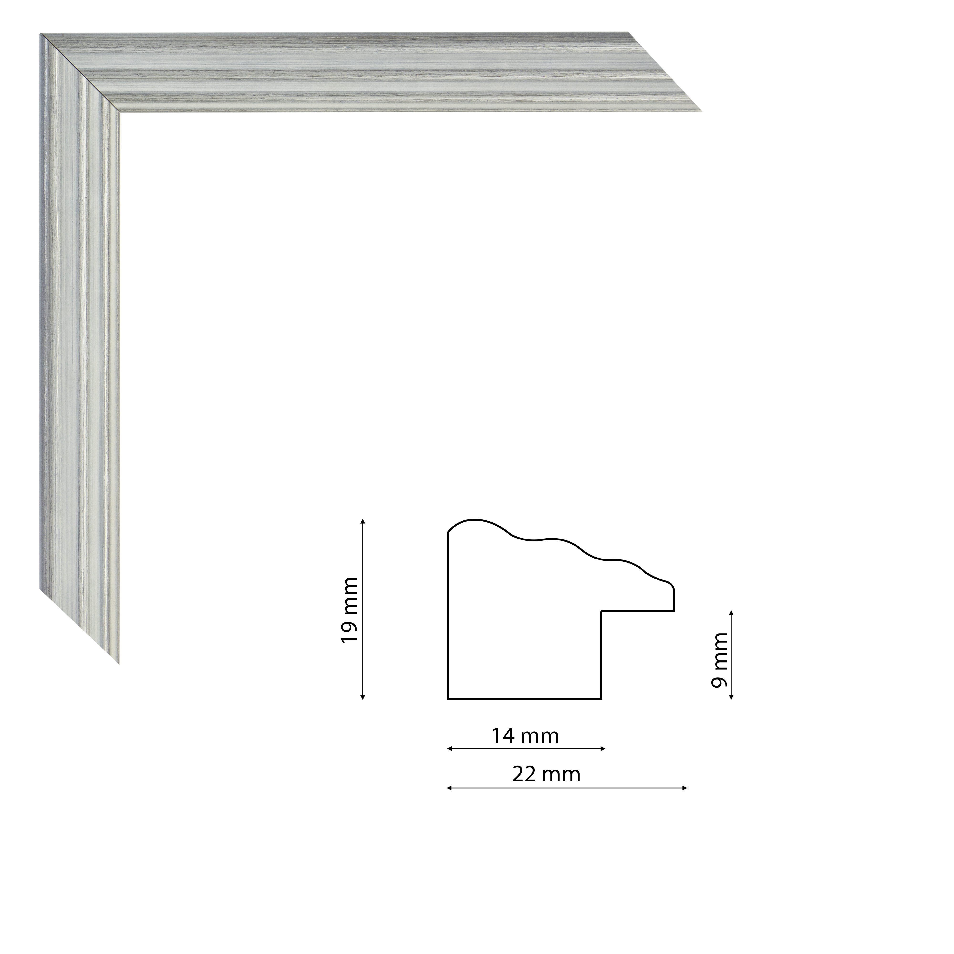 Keskeny enyhén profilos keretléc szürke színben, trópusi fából.