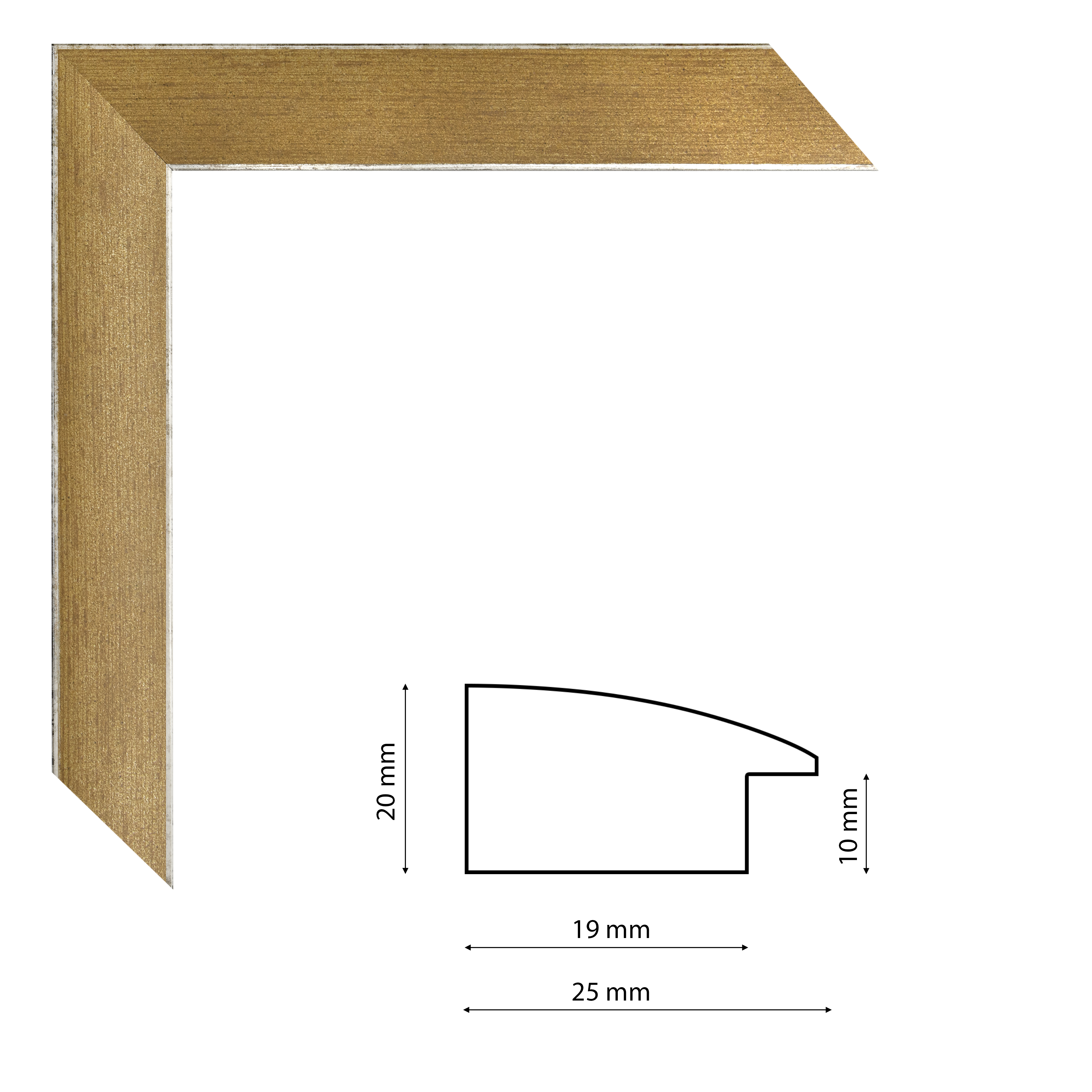 Enyhén metálos felületű, réz színű képkeretléc trópusi fából.