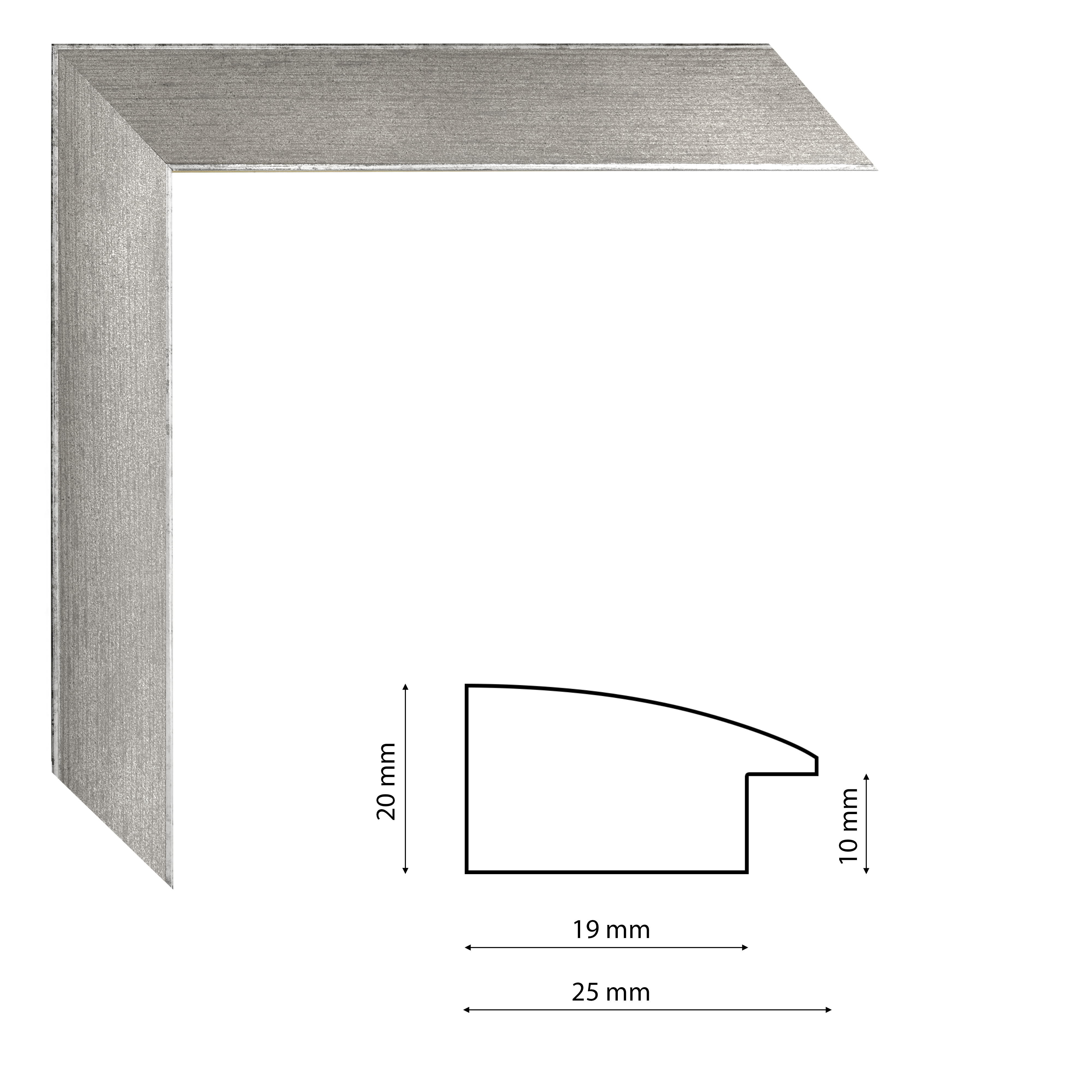 Enyhén metálos felületű, ezüst-szürke képkeretléc trópusi fából.