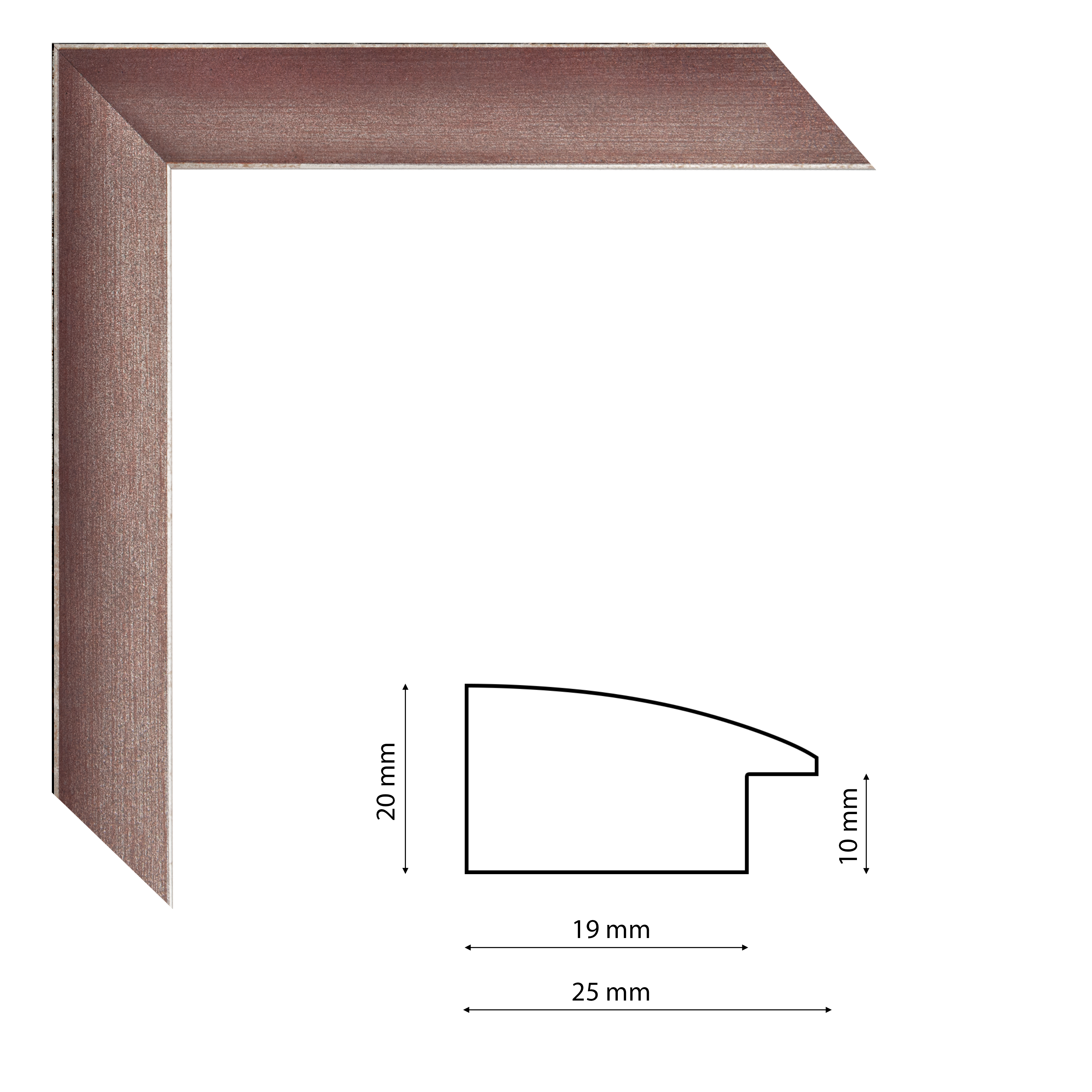 Enyhén metálos felületű, mályva színű képkeretléc trópusi fából.