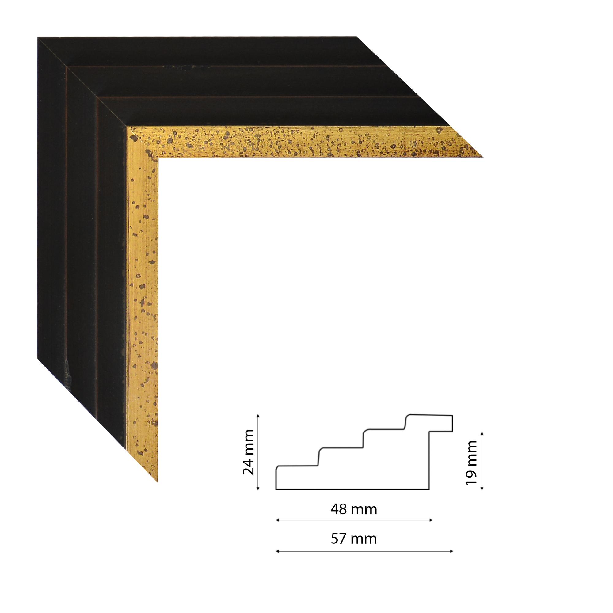Képkeretléc HR696-902 Kérdése van? Negatív, lépcsőzetes profilú wenge-arany képkeretléc trópusi fából.