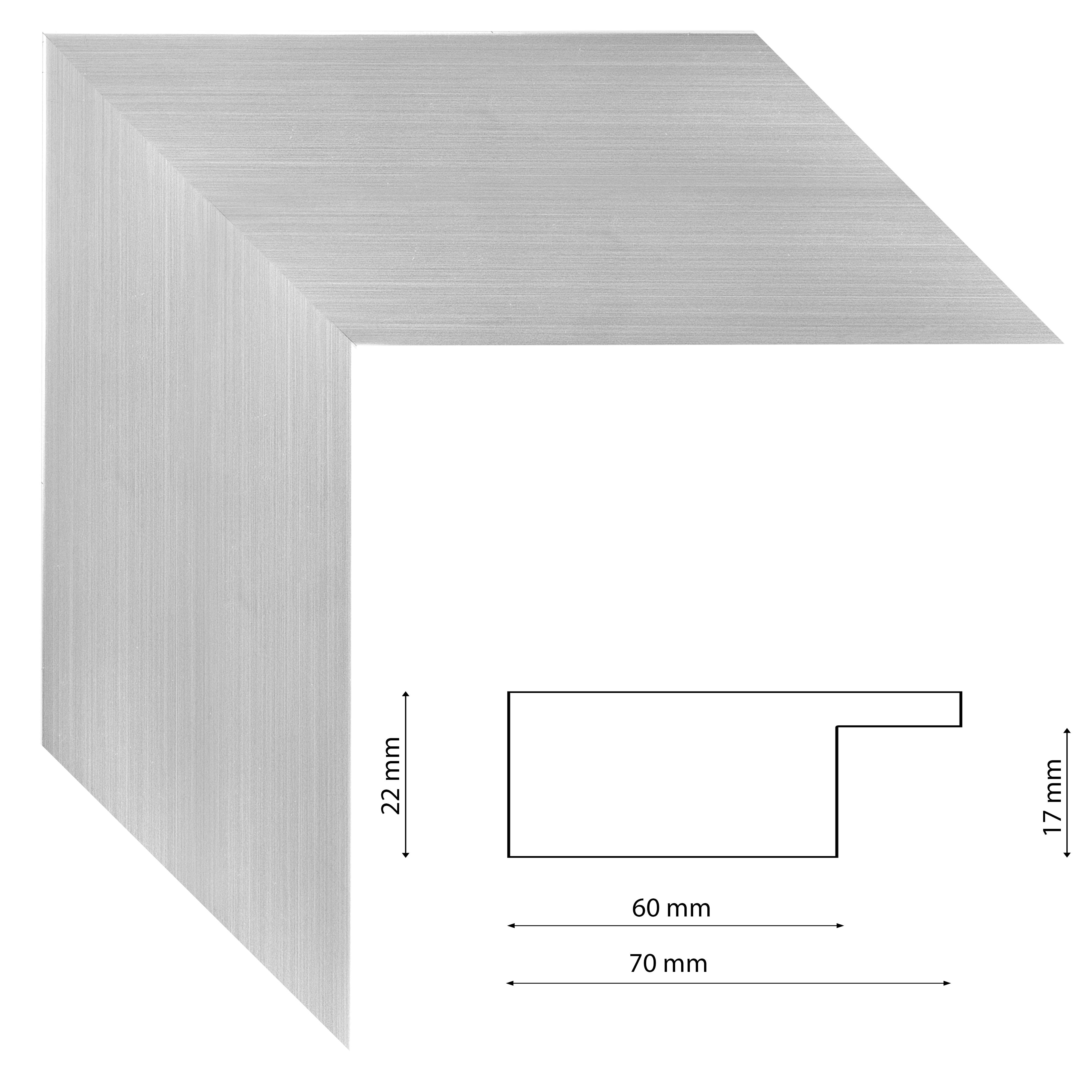 Modern, lapos képkeretléc hideg ezüst színben, trópusi fából.