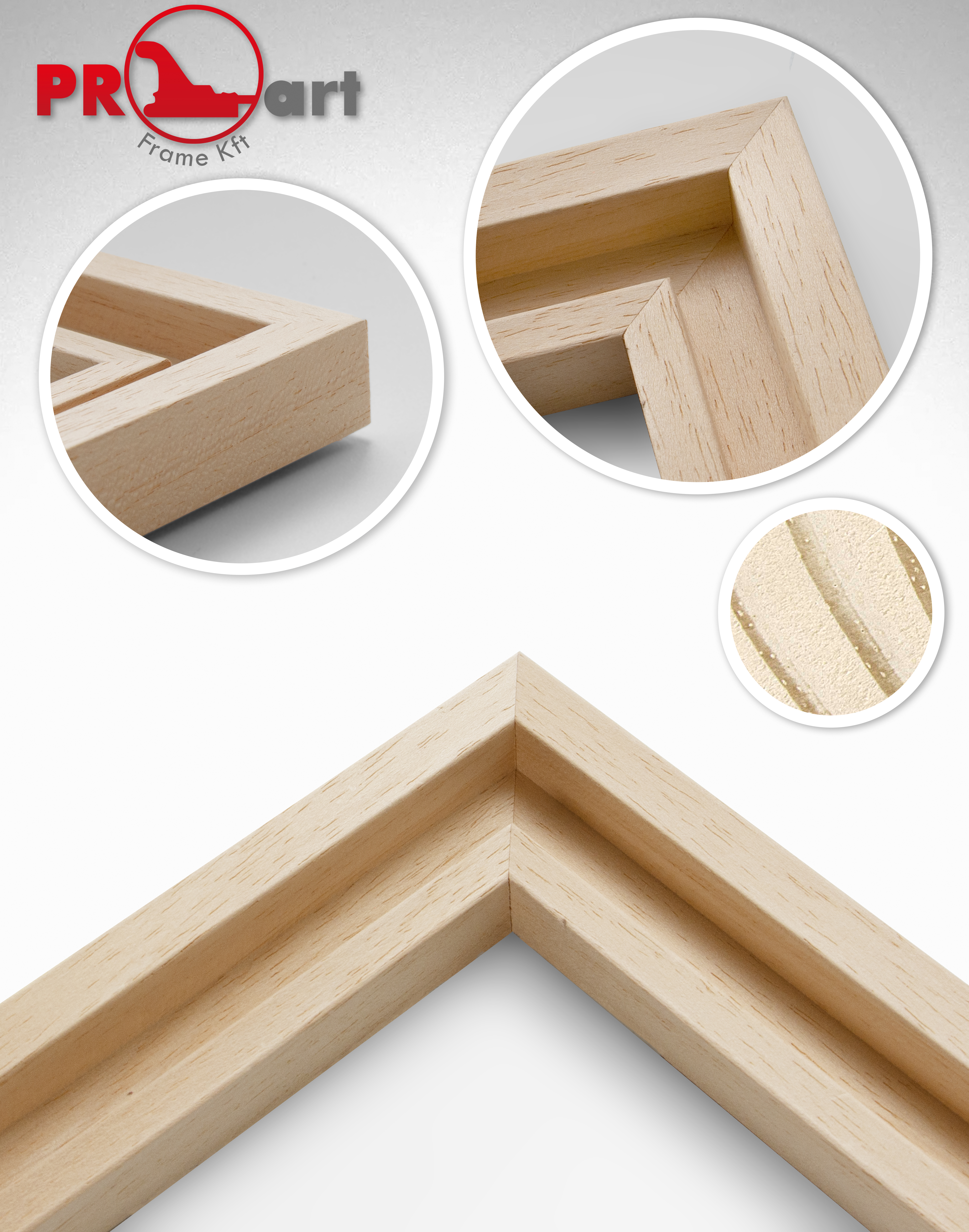 Képkeretléc HR430-000 Kérdése van? Nyers kiállító keret, melynek különlegessége a belső részén található rész, melyre felfektethetünk (felragaszthatunk) bármilyen képet, akár egy síkba hozva azt a keret élével.