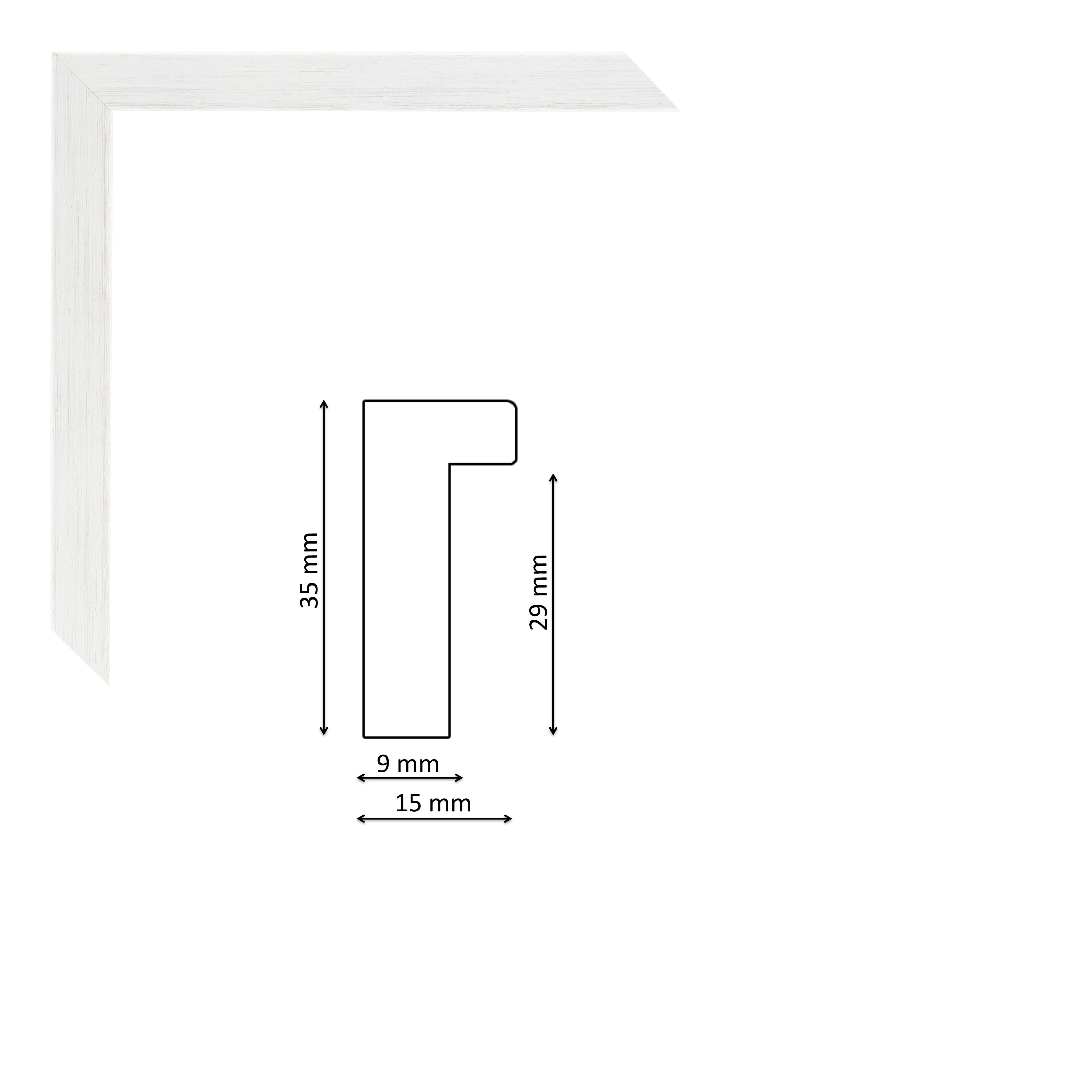 Mélyfalcú spanyol képkeretléc, fehér festéssel, trópusi fából.