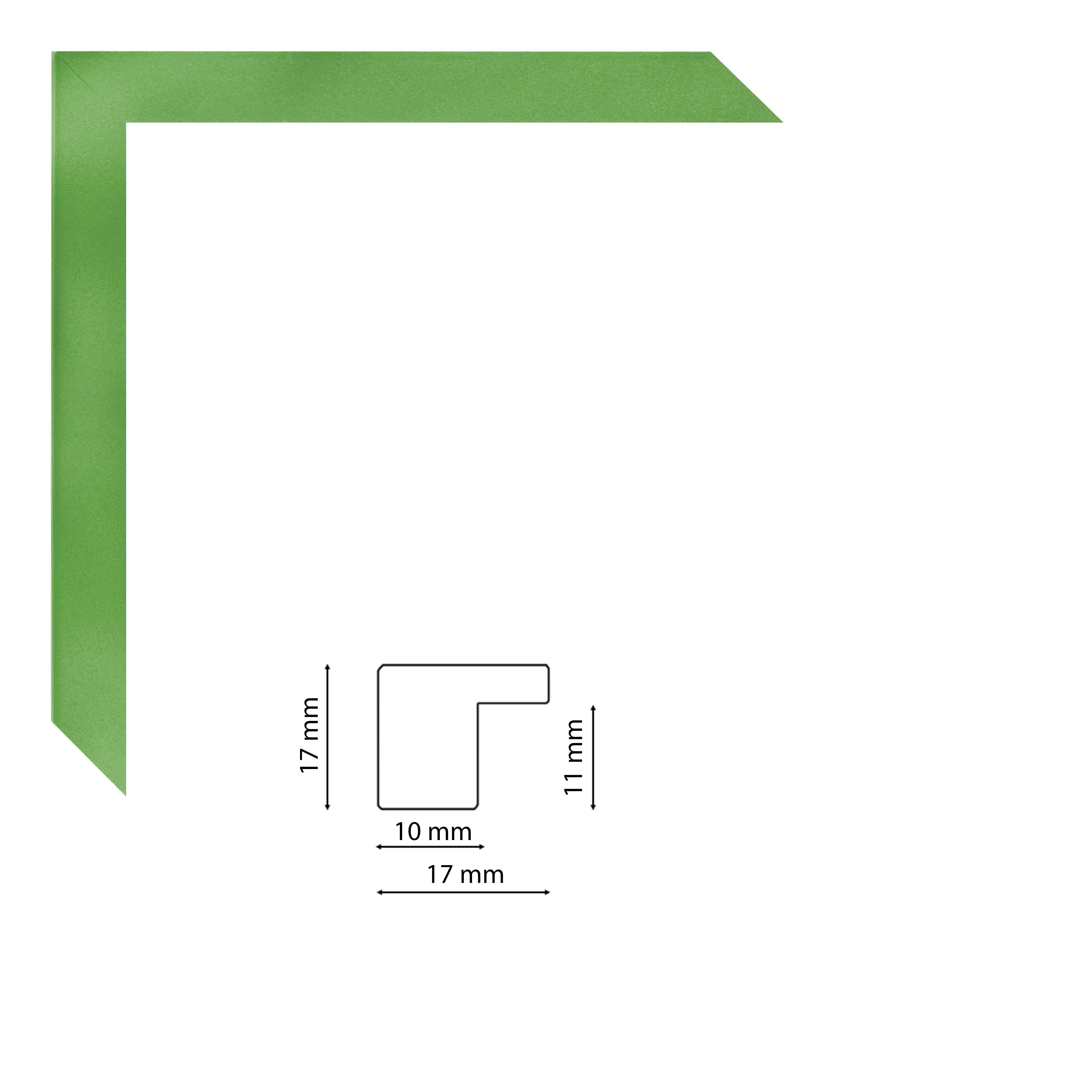 Keskeny, modern képkeretléc középzöld színben, trópusi fából.