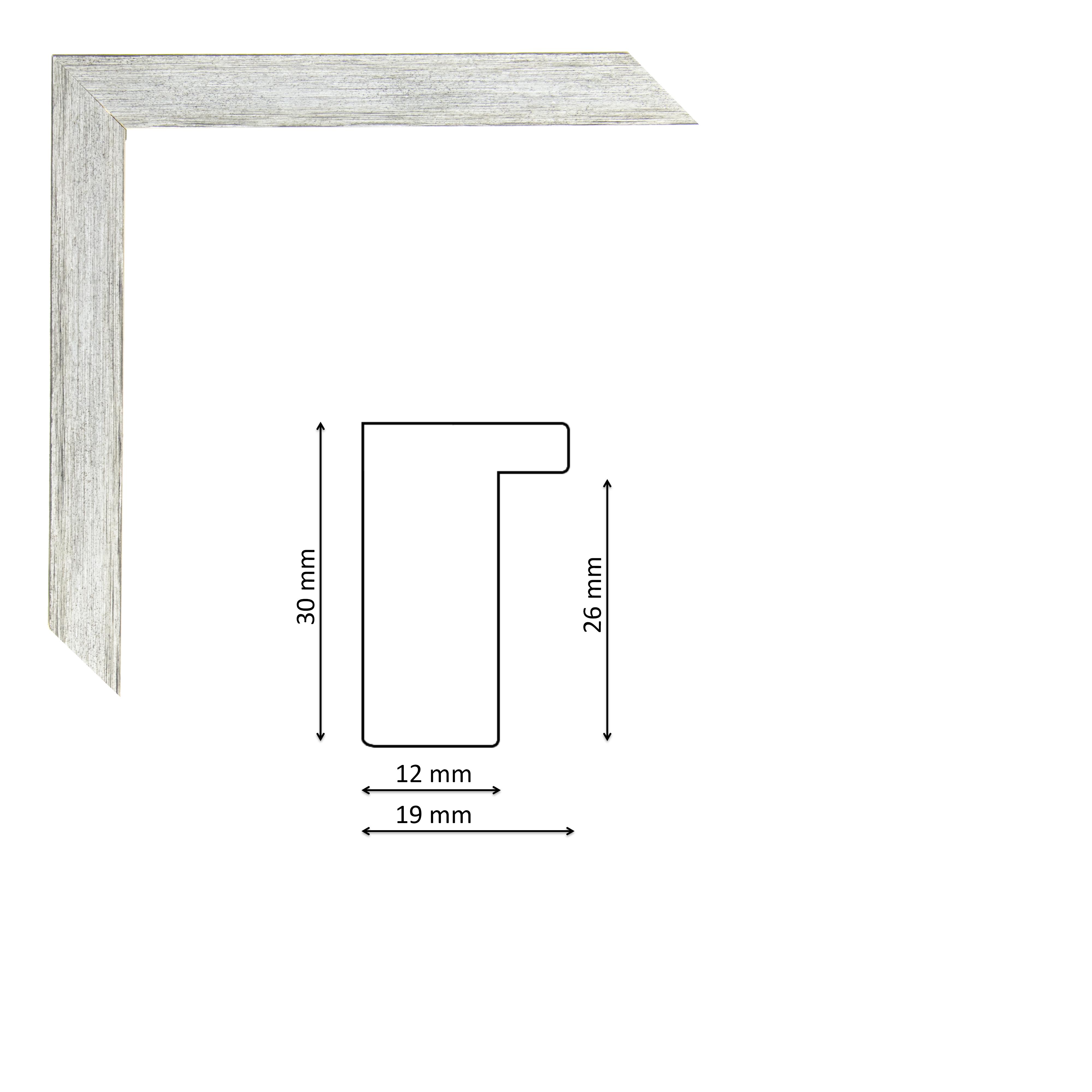 Mélyfalcú spanyol képkeretléc, ezüst színben, trópusi fából.