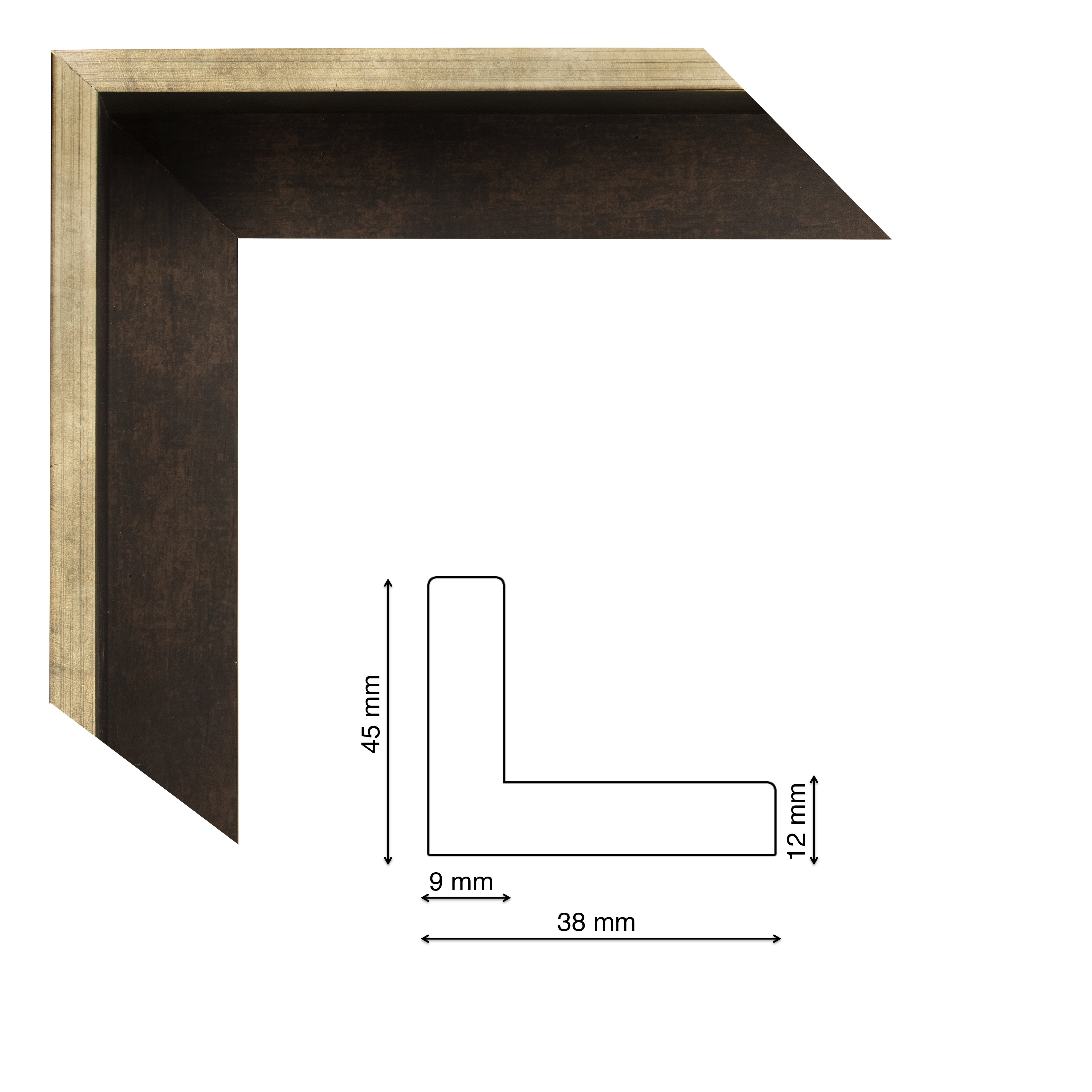 Képkeretléc IM2126-477 Kérdése van? Kiállító képkeret barnás színben, ezüst csíkkal, spanyol gyártótól, trópusi fából vászonképek és/vagy farostra festett képek keretezéséhez.