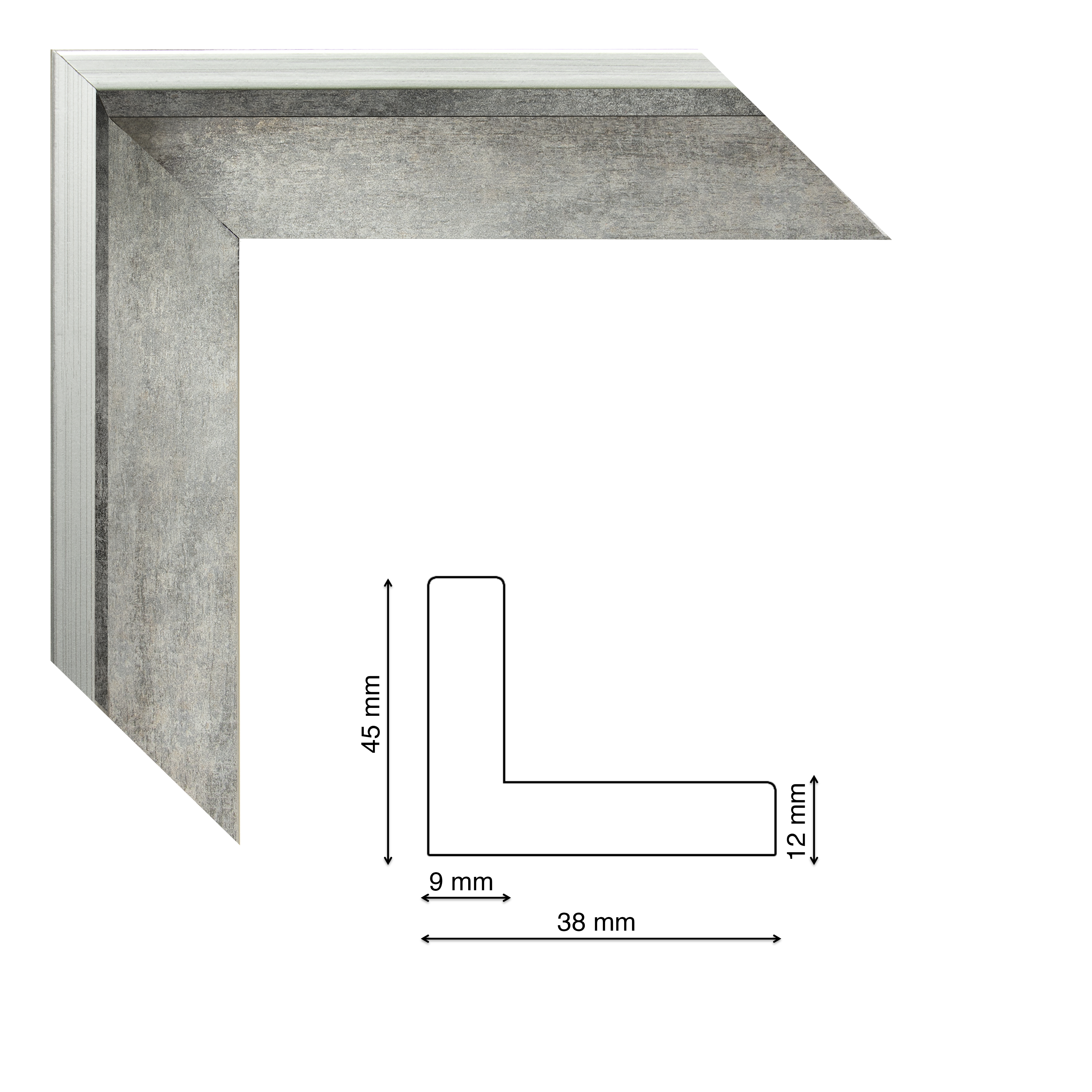 Képkeretléc IM2126-626 Kérdése van? Kiállító képkeret ezüst színben, ezüst csíkkal, spanyol gyártótól, trópusi fából vászonképek és/vagy farostra festett képek keretezéséhez.