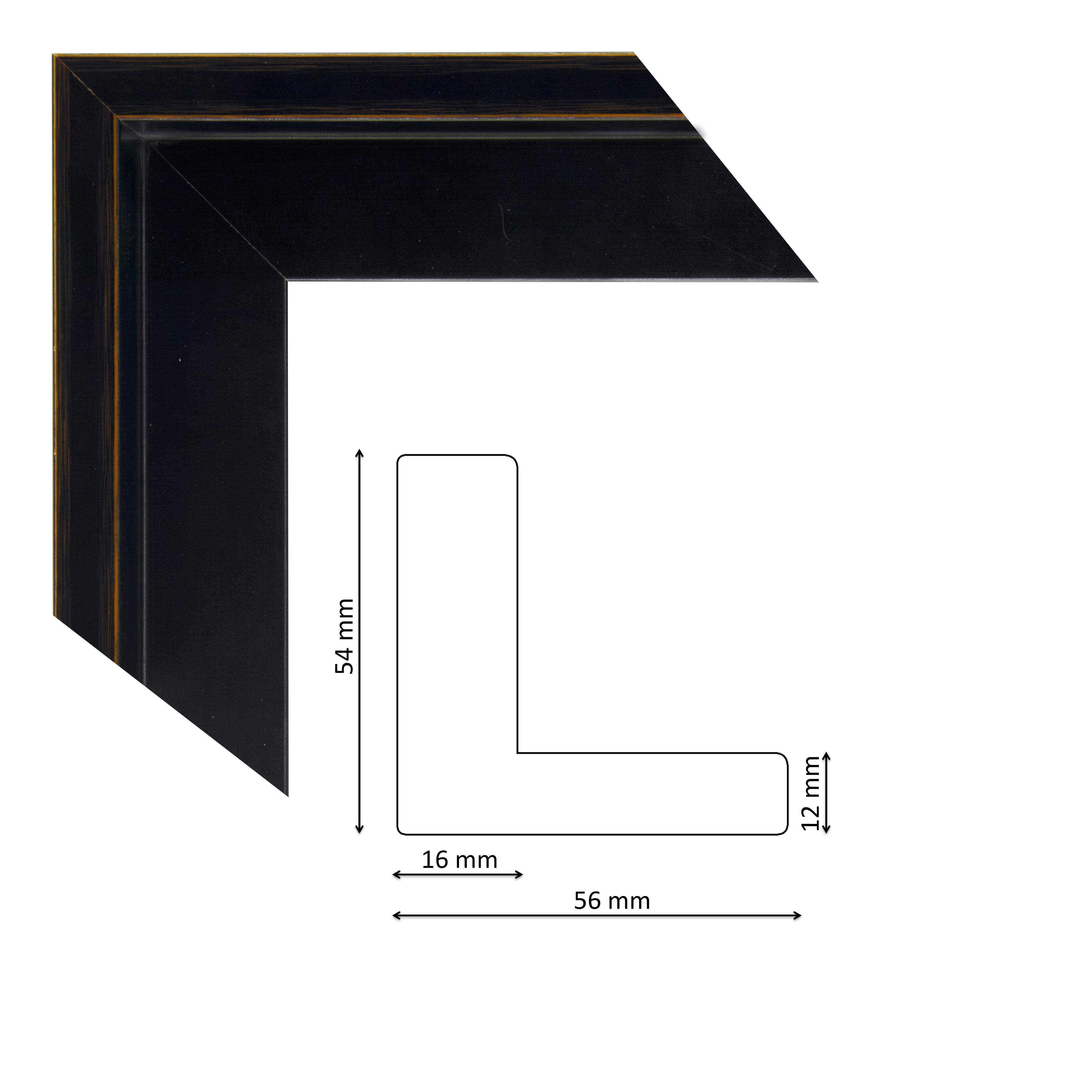 Képkeretléc IM2137-471 Kérdése van? Kiállító képkeret matt fekete színben, narancs húzásokkal spanyol gyártótól, trópusi fából vászonképek és/vagy farostra festett képek keretezéséhez.