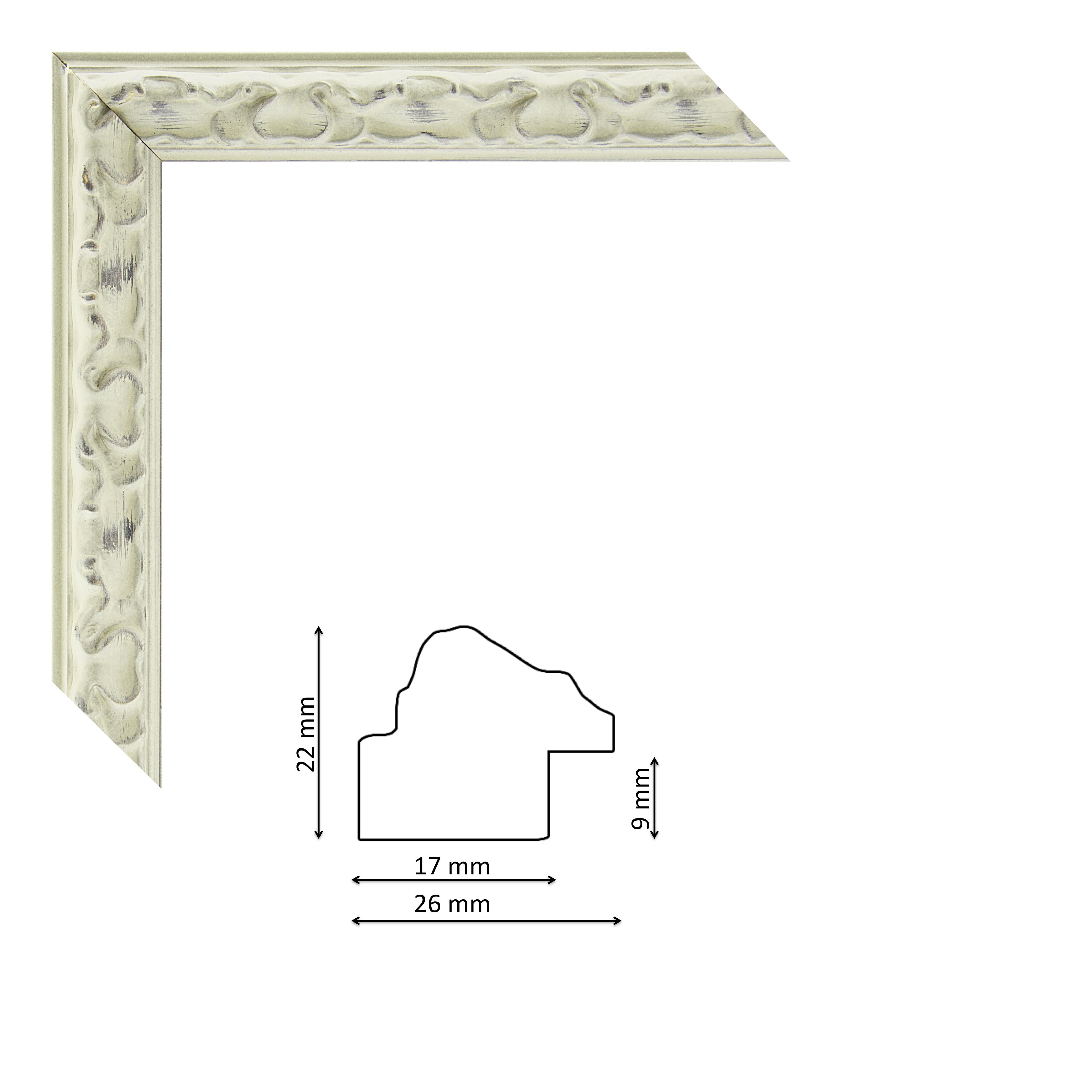 Képkeretléc IM3082-585 Kérdése van? Faragott mintás spanyol képkeretléc bézses színben, natúr visszatöréssel, trópusi fából.