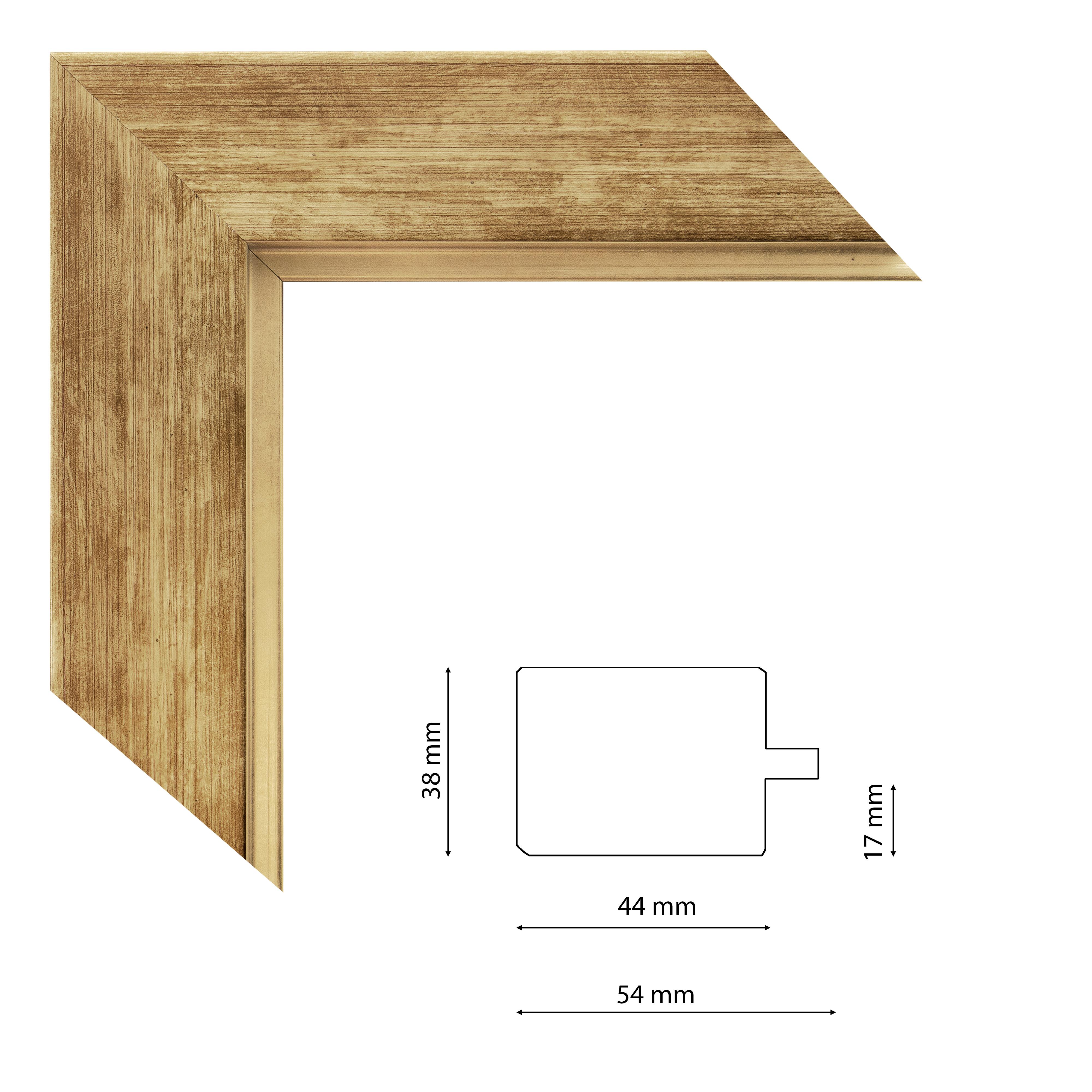 Képkeretléc IM4413-727 Kérdése van? Modern spanyol képkeretléc egyedi profillal, meleg arany árnyalattal, trópusi fából.