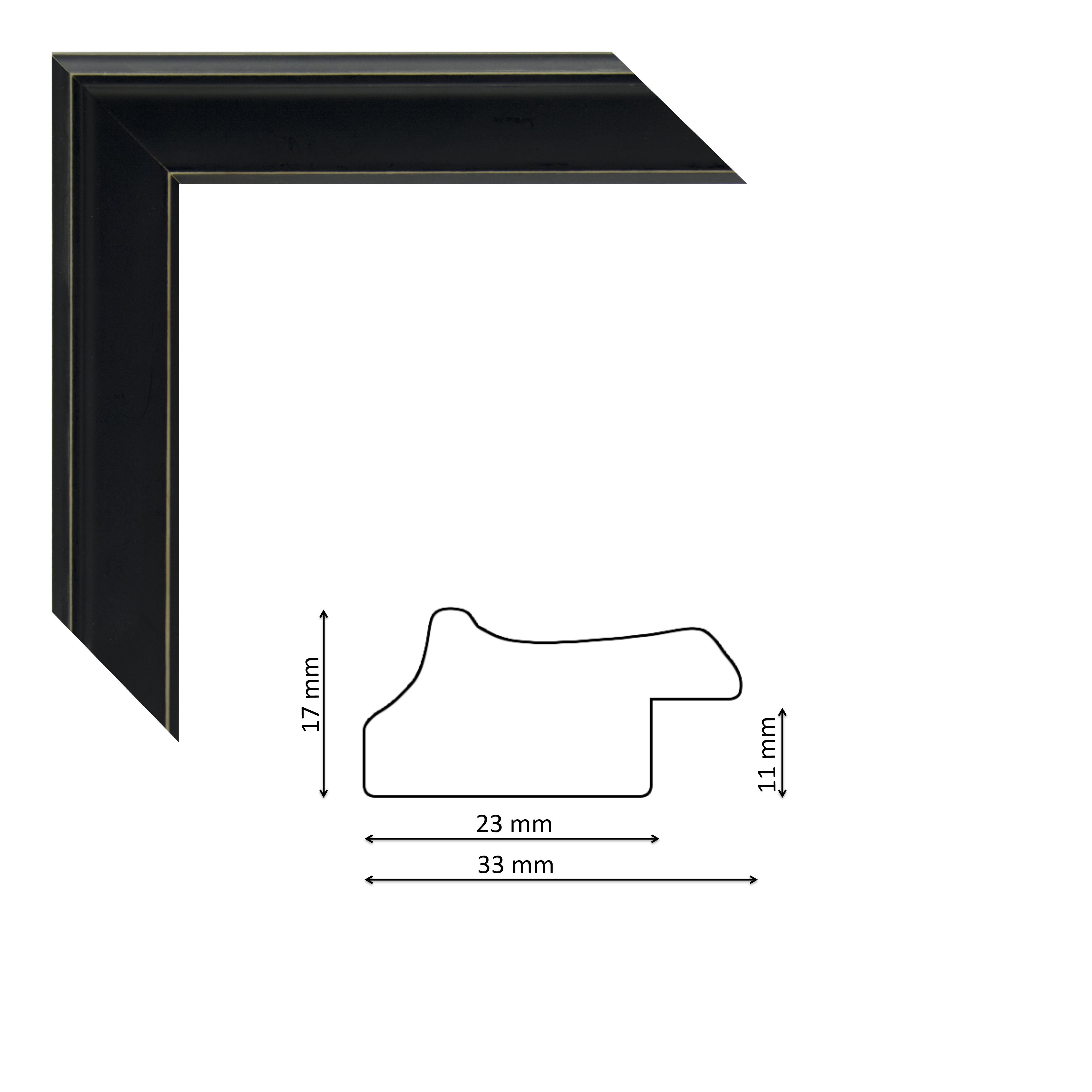 Képkeretléc IM5301-470 Kérdése van? Modern, enyhén profilos fekete spanyol képkeretléc, natúr élekkel, trópusi fából.